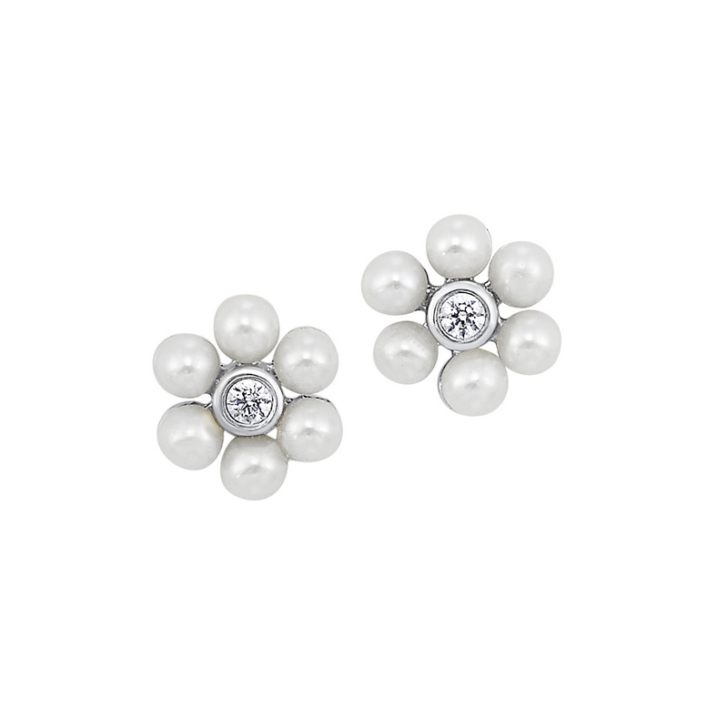 0.04ct Diamond and Pearl Flower Post Earrings -Stock#10699