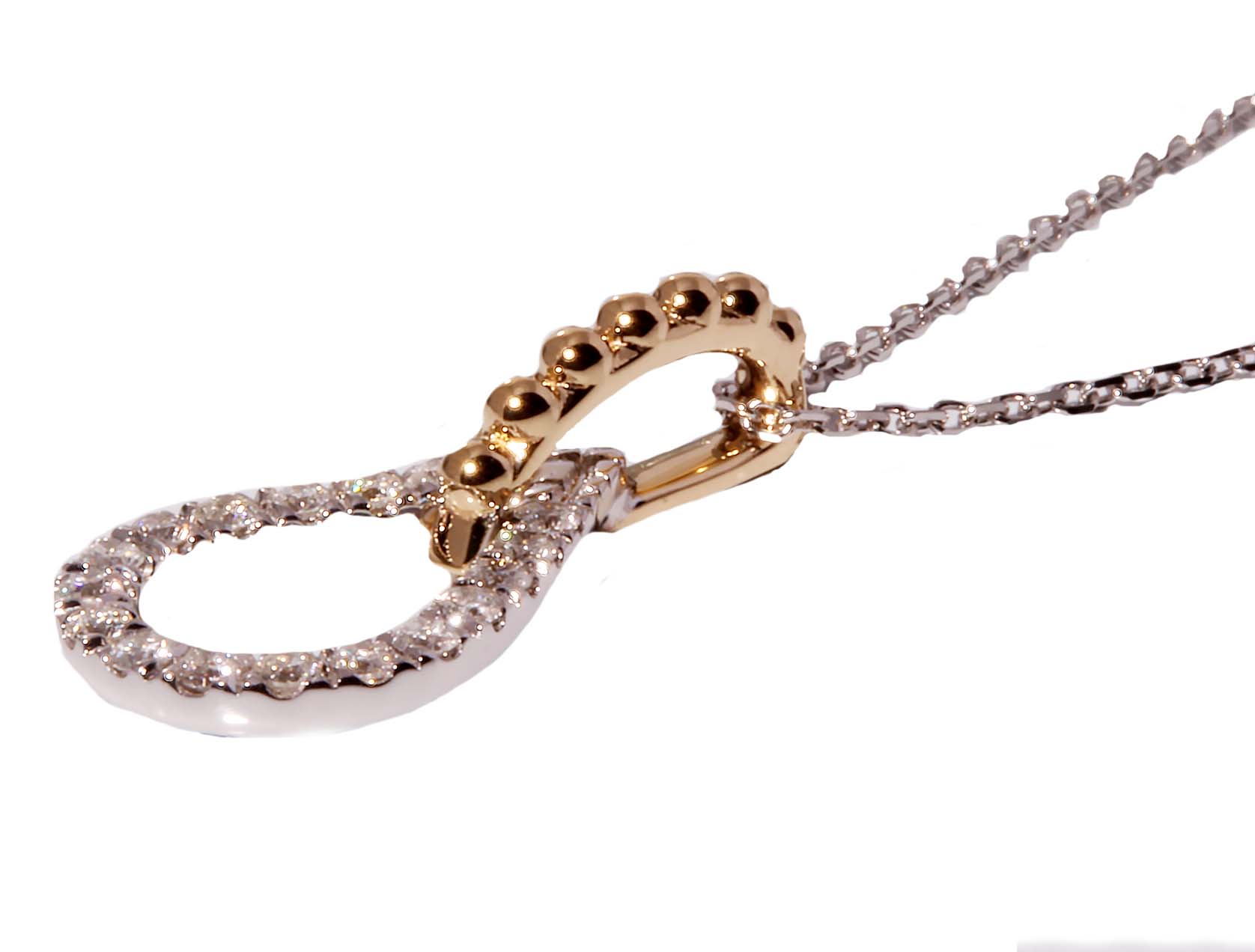 0.14ct Open End & Yellow Gold Necklace in 14K Two Tone Gold -Stock#10913