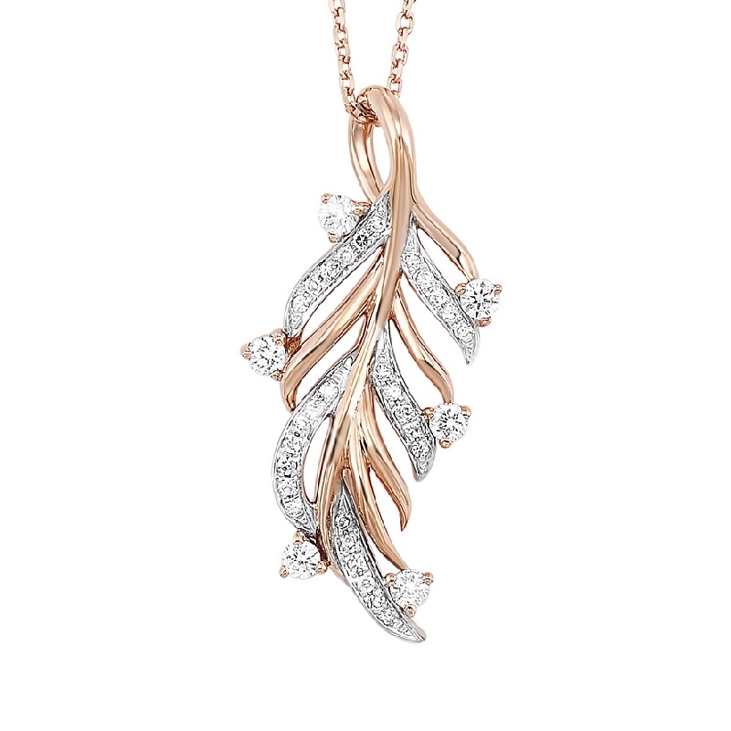 0.20ctw Diamond Leaf Pendant in 14K Rose Gold