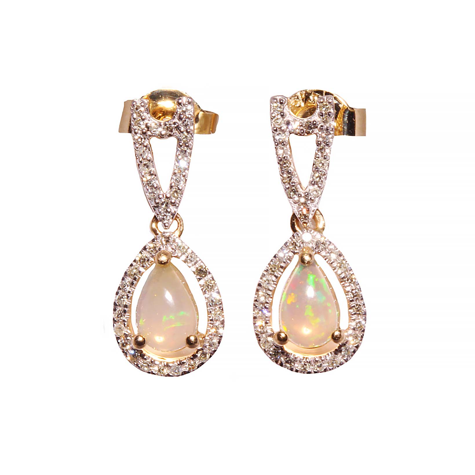 0.22ct Diamond Halo Drop and Opal Earrings in 14K Yellow Gold -Stock#10933