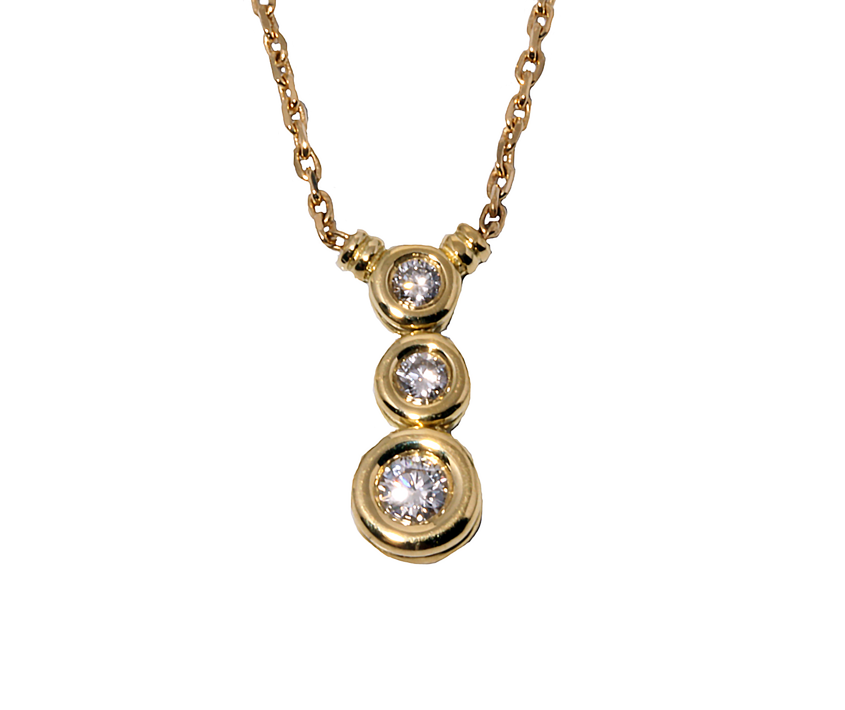 0.26ctw 3 Bezel Drop Center Necklace in 18K Yellow Gold – Stock# 10765