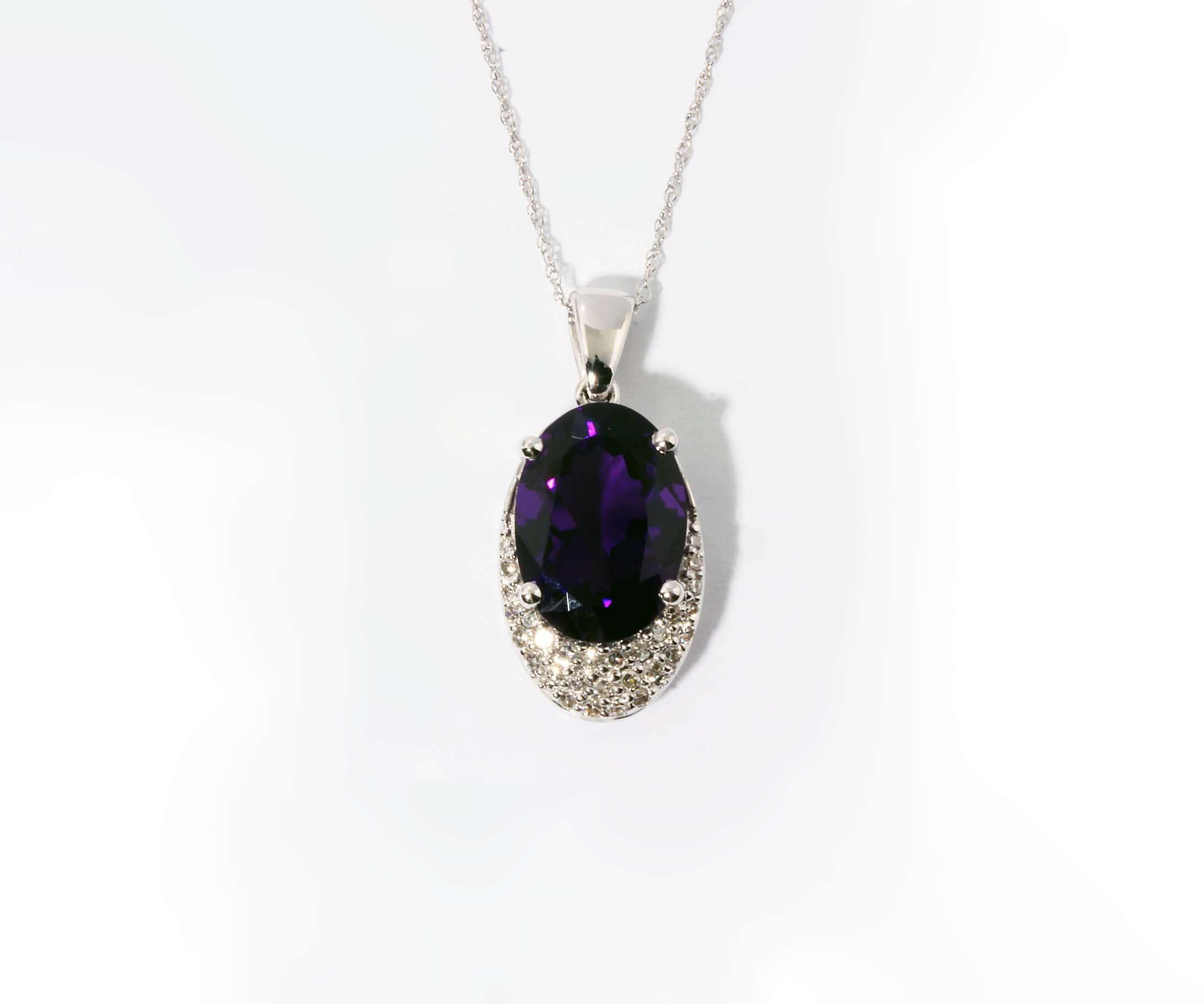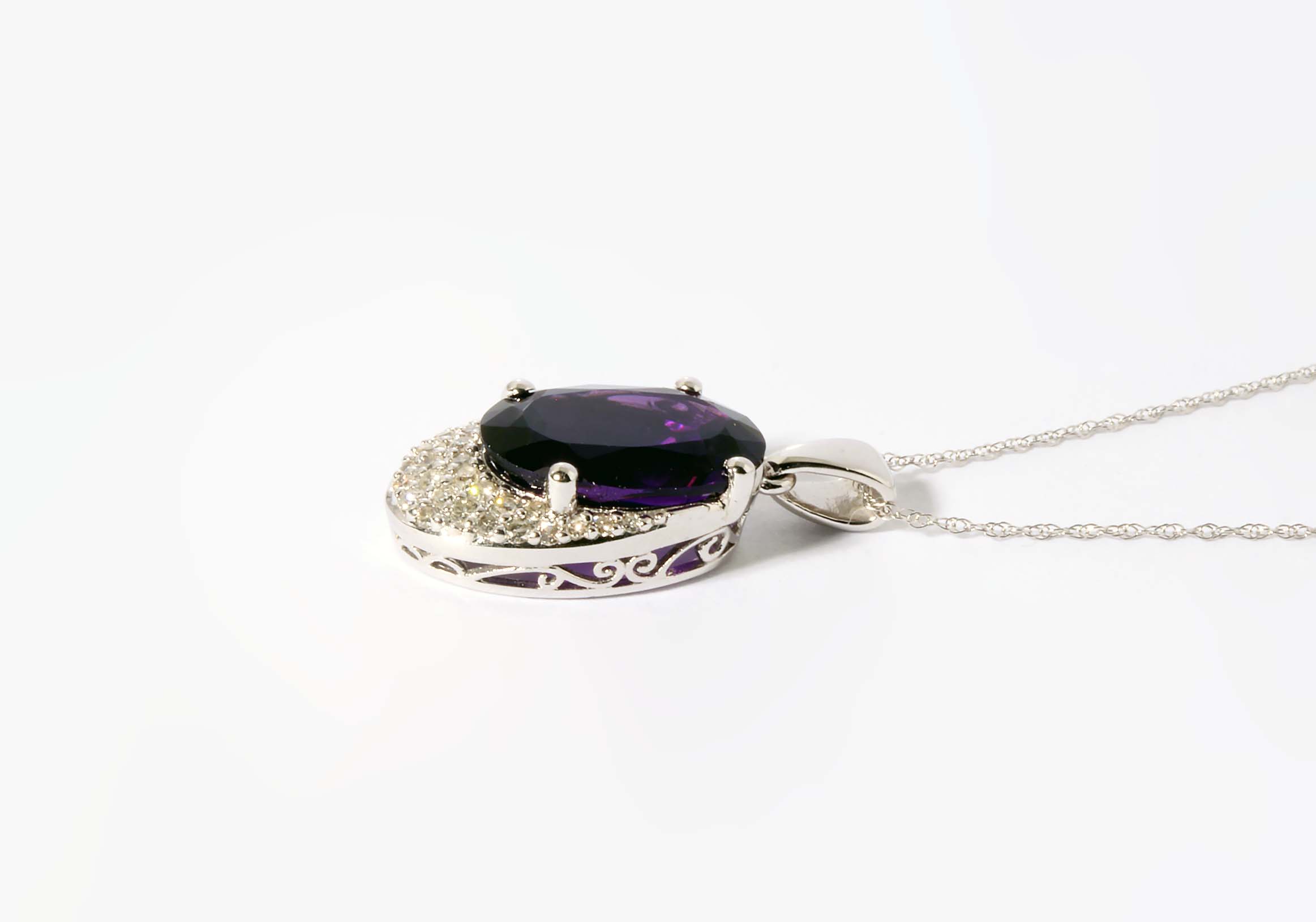 Be the first to review “0.27ctw & 14X10 Oval Amethyst Pendant in 14K White Gold”