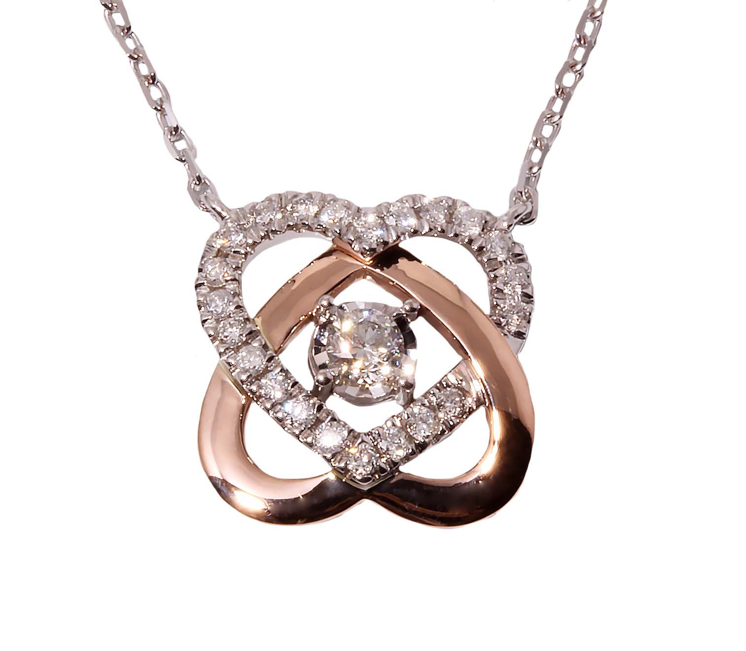 0.33ctw Diamond and Solid Heart & Love’s Crossings Necklace in 14K Two Tone Gold -Stock#10909