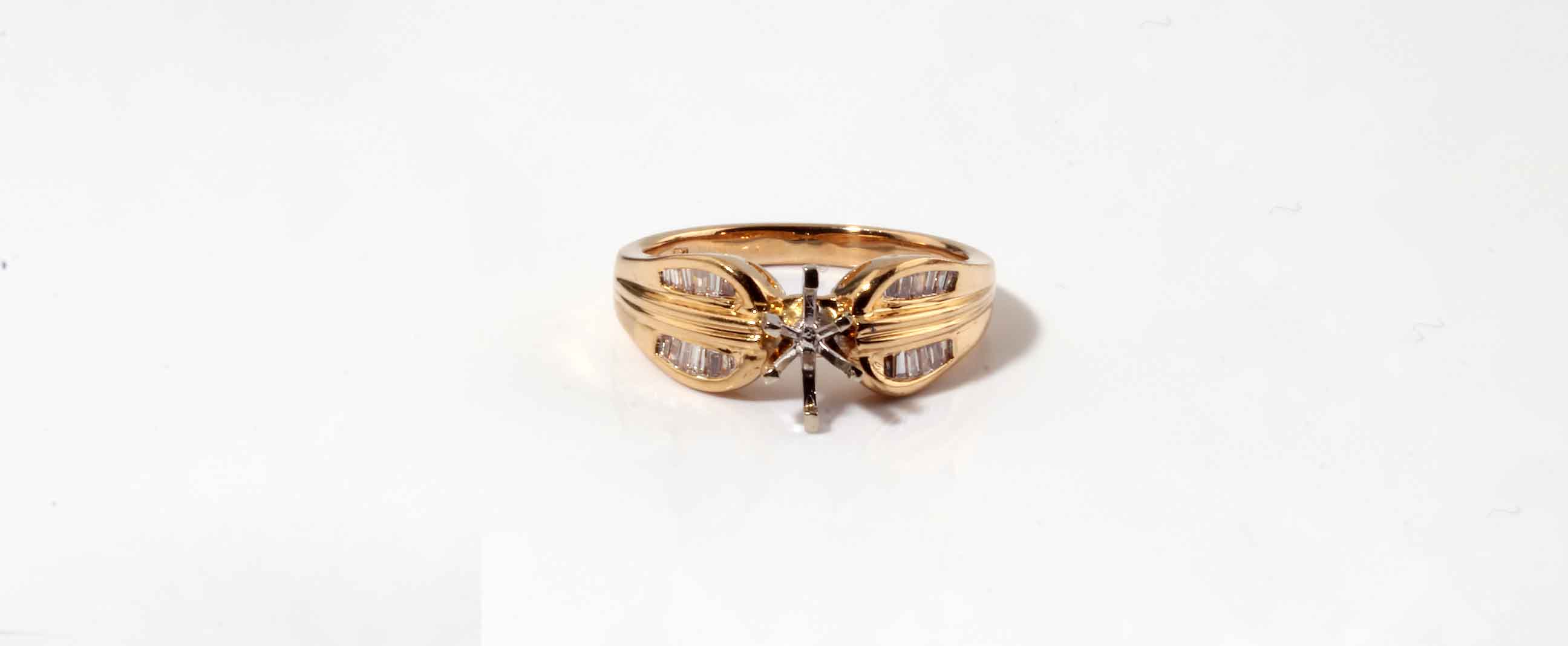 0.33ctw Yellow Gold Set; Double Row Baguette Engagement Ring (0.21ct) & Matching 3-Cluster on Each Side Wedding Band (0.12ct) – #10643
