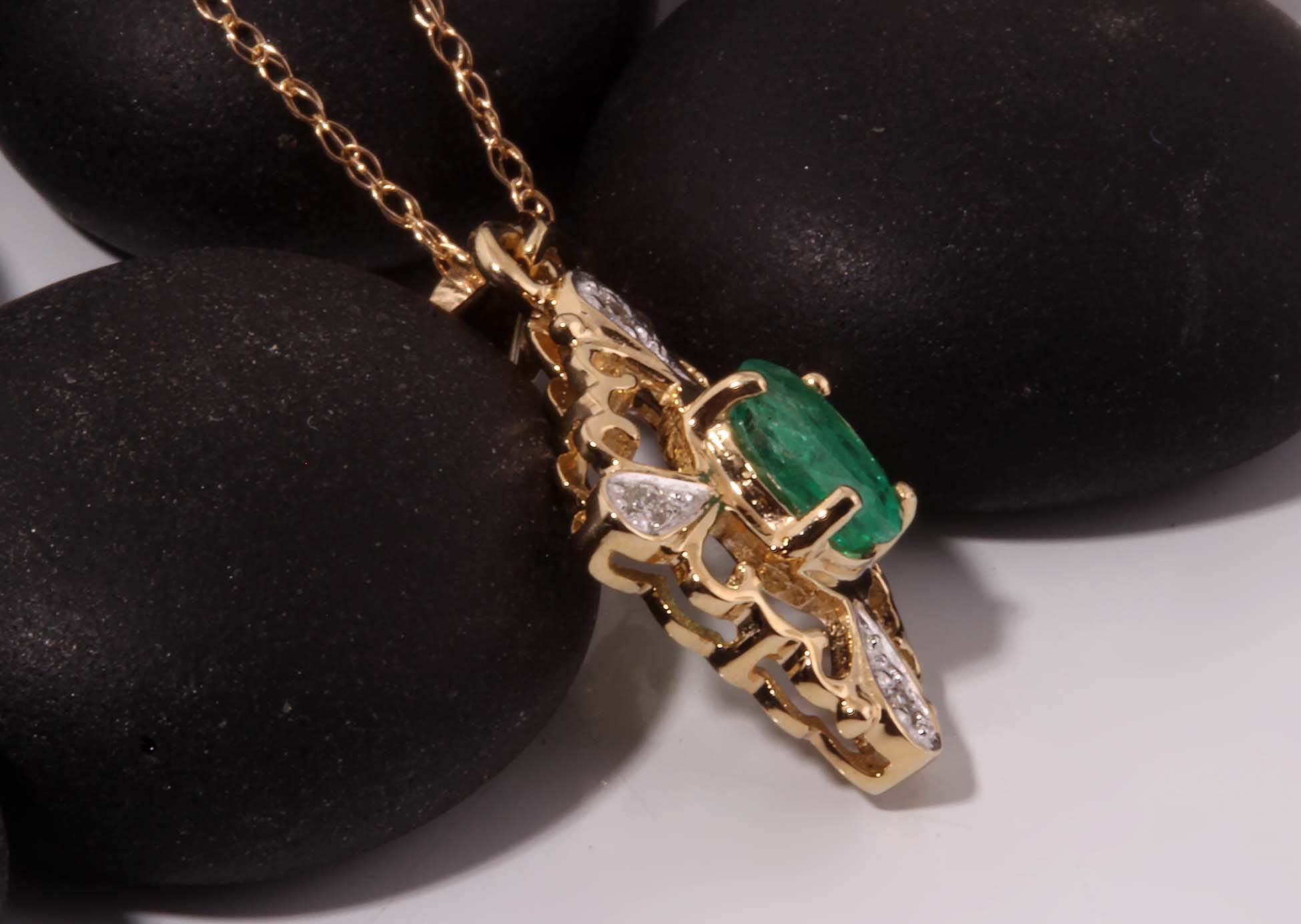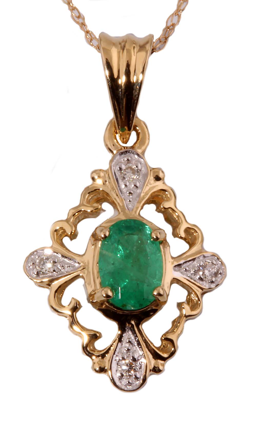 .03 Diamond and Emerald Pendant in 14K Yellow Gold -Stock#10804