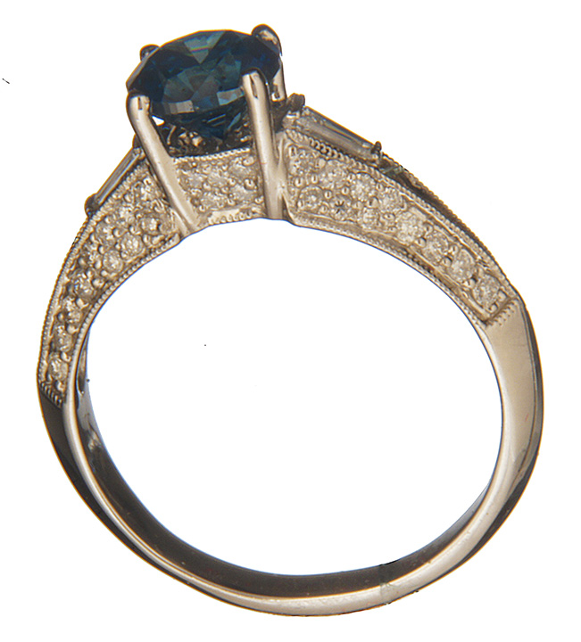 1.20ctw Blue Diamond Engagement Ring, 0.33ctwRound Micro Pave & Baguettes 14K White Gold – Stock# 7669