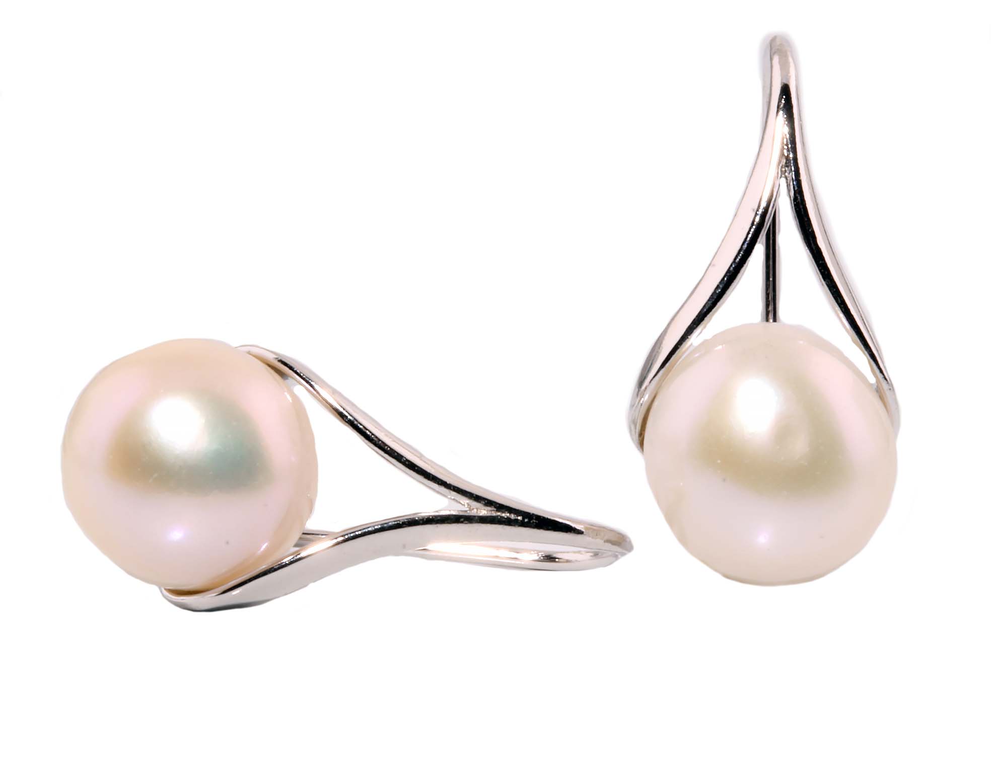 10mm Freshwater Button Pearl Earrings in Sterling Silver -Stock#10799