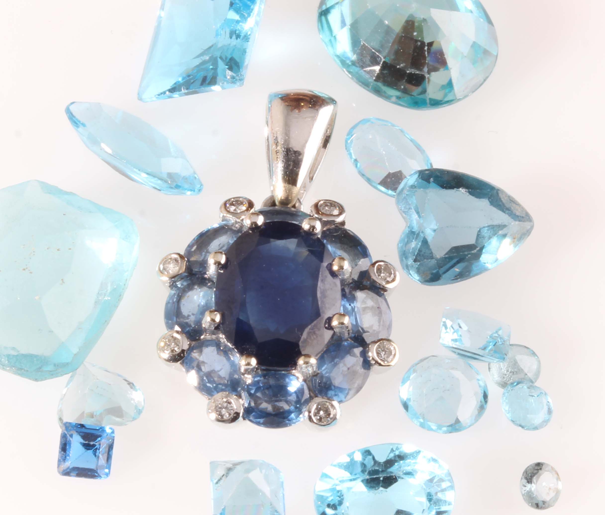 14K WG Blue Saph w/ 8Dia  Pendent   14K WG Chain Price Separate