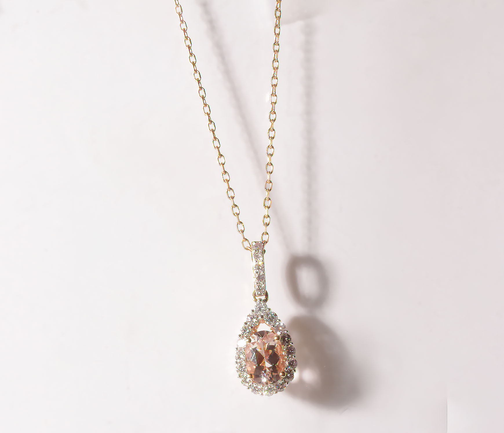 14K Rose Gold Chain /Morganite Pendant 0.68CT #230-00050
