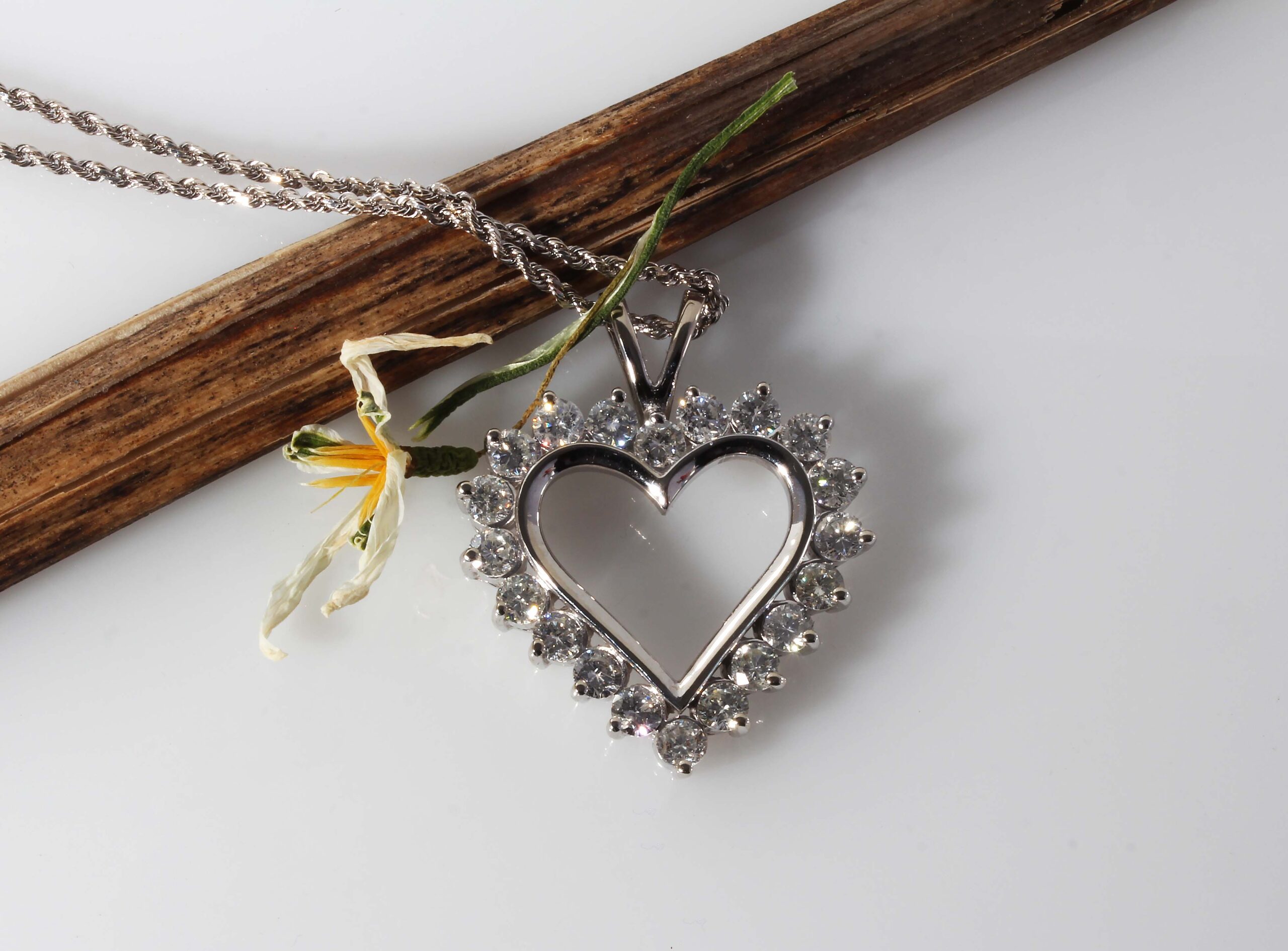 14K WG Heart Diamond Necklace 2ct 6.8dwt 10.6g #165-00025