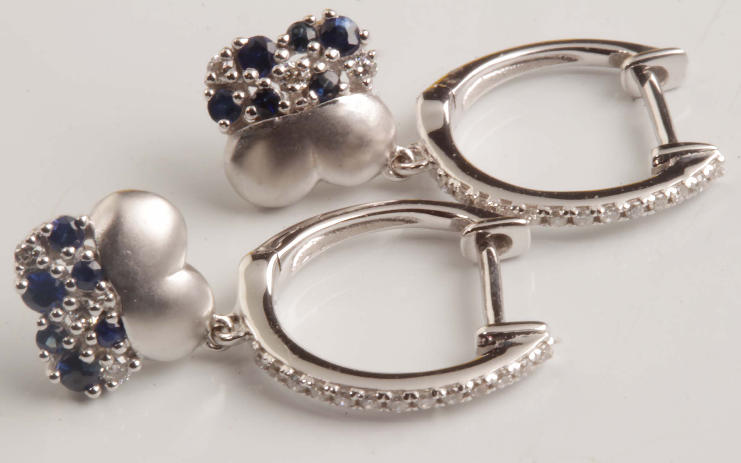 14K WG Sapphire & Diamond Dangle Earrings .12tdw #210-00032