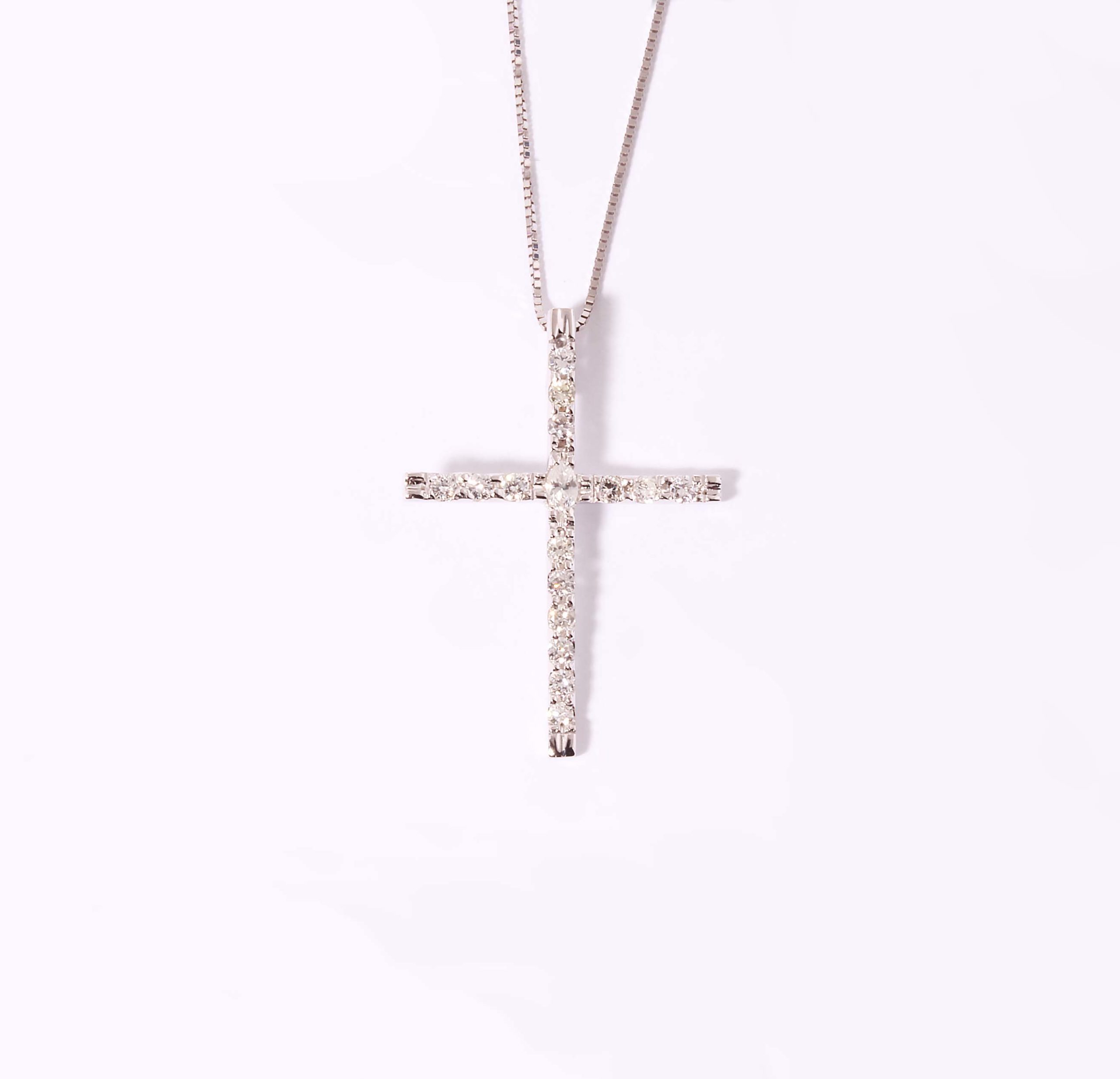 .50 carat total diamond weight handmade diamond cross with Marquise cut diamond in center. -Stock# 9739
