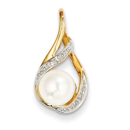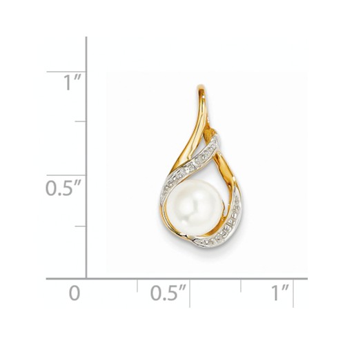 14K Yellow Gold 0.01ct Diamond & 7mm Round Freshwater Cultured Pearl 20x10mm Pendant – #10649