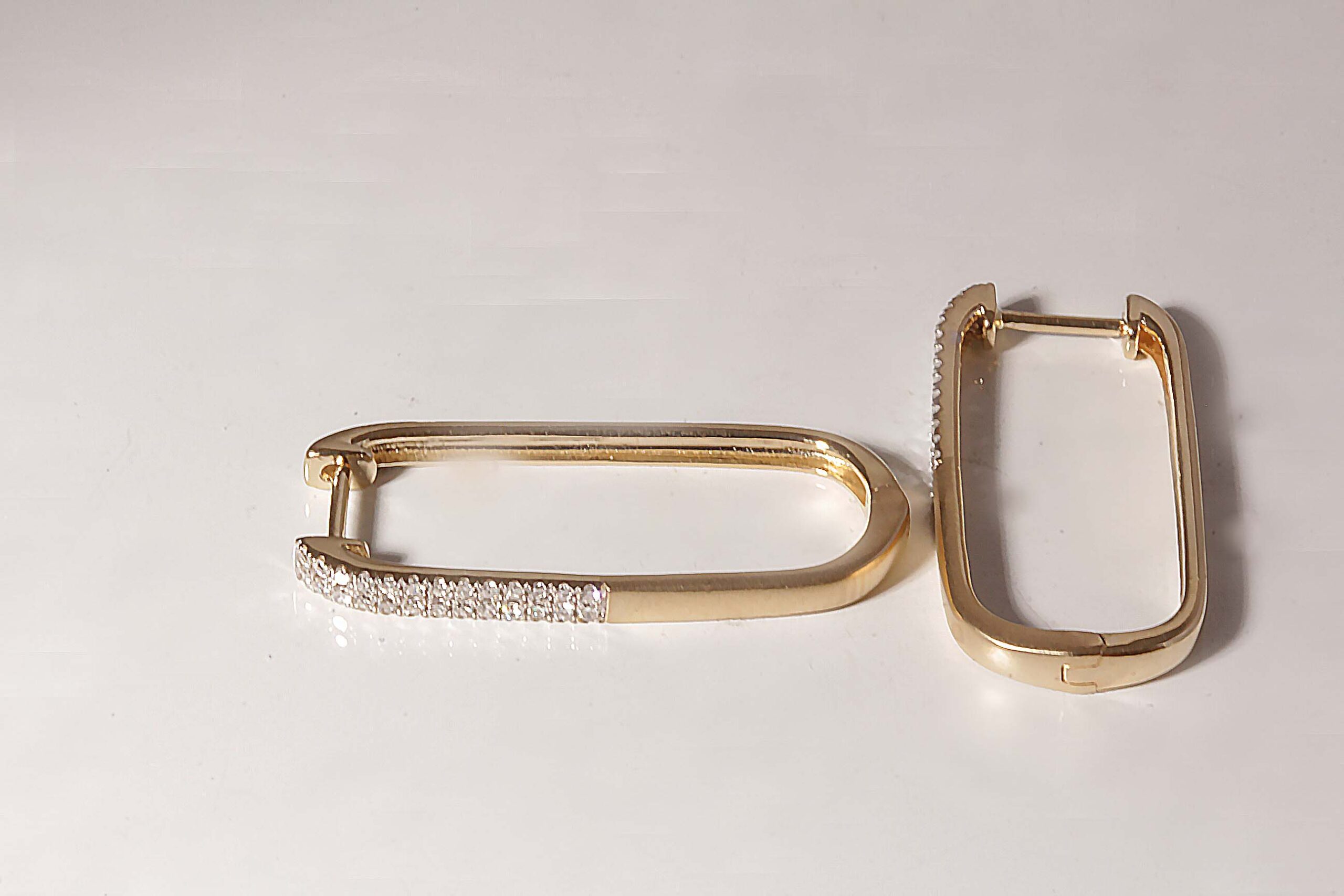 14k Yellow Gold .20ct Diamond Rectangle Hoop Earrings # 11210