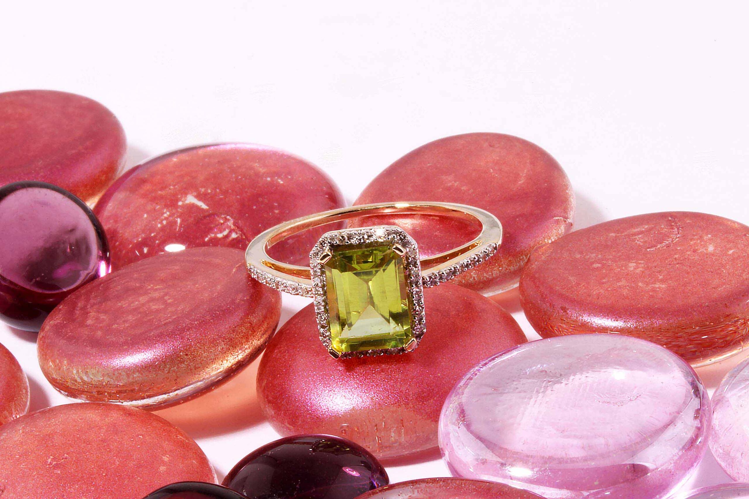 Be the first to review “14K Yellow Gold 8×6 MM 1.70ct Emerald Cut Peridot w/ 0.10ct Halo & Single Row Shank”