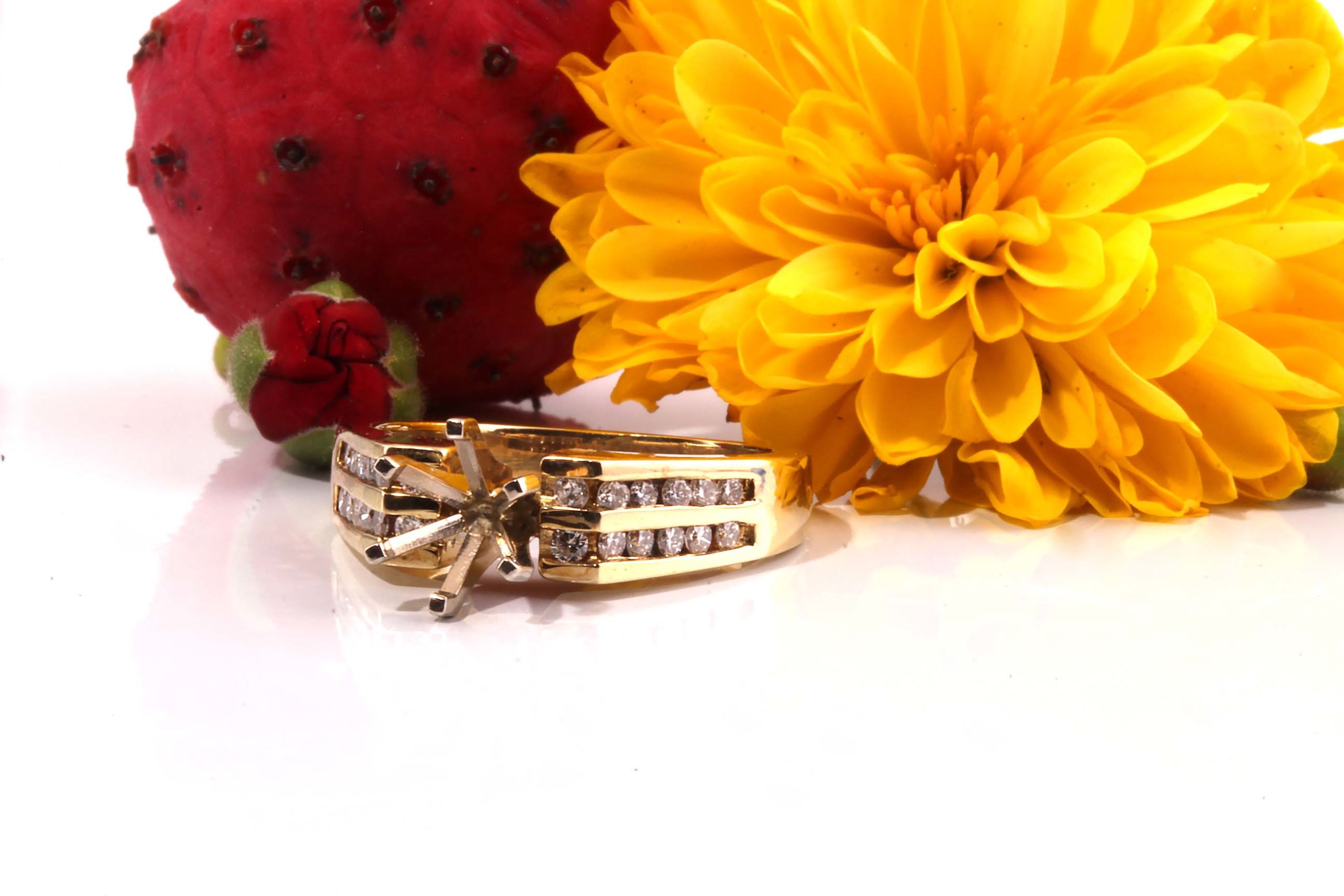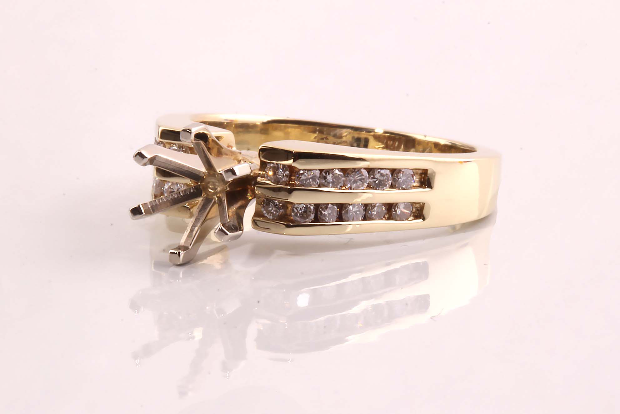 14K Yellow Gold Double Row Channel Cathedral Semi-Mount .25 Ct TDW 9756