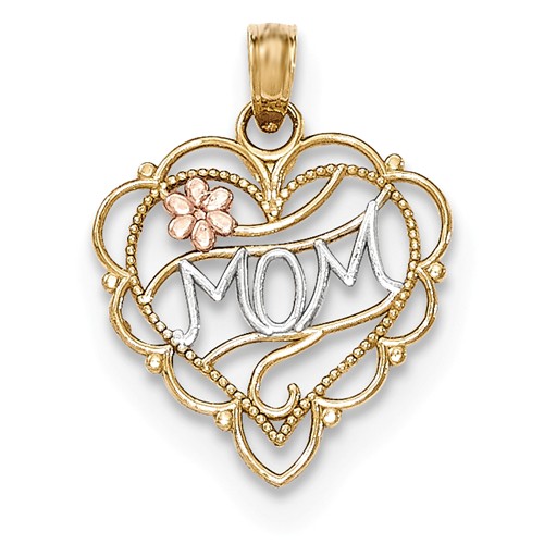 14k Two-Tone and Rhodium 22 x 16mm Mom in Heart Pendant – #8129