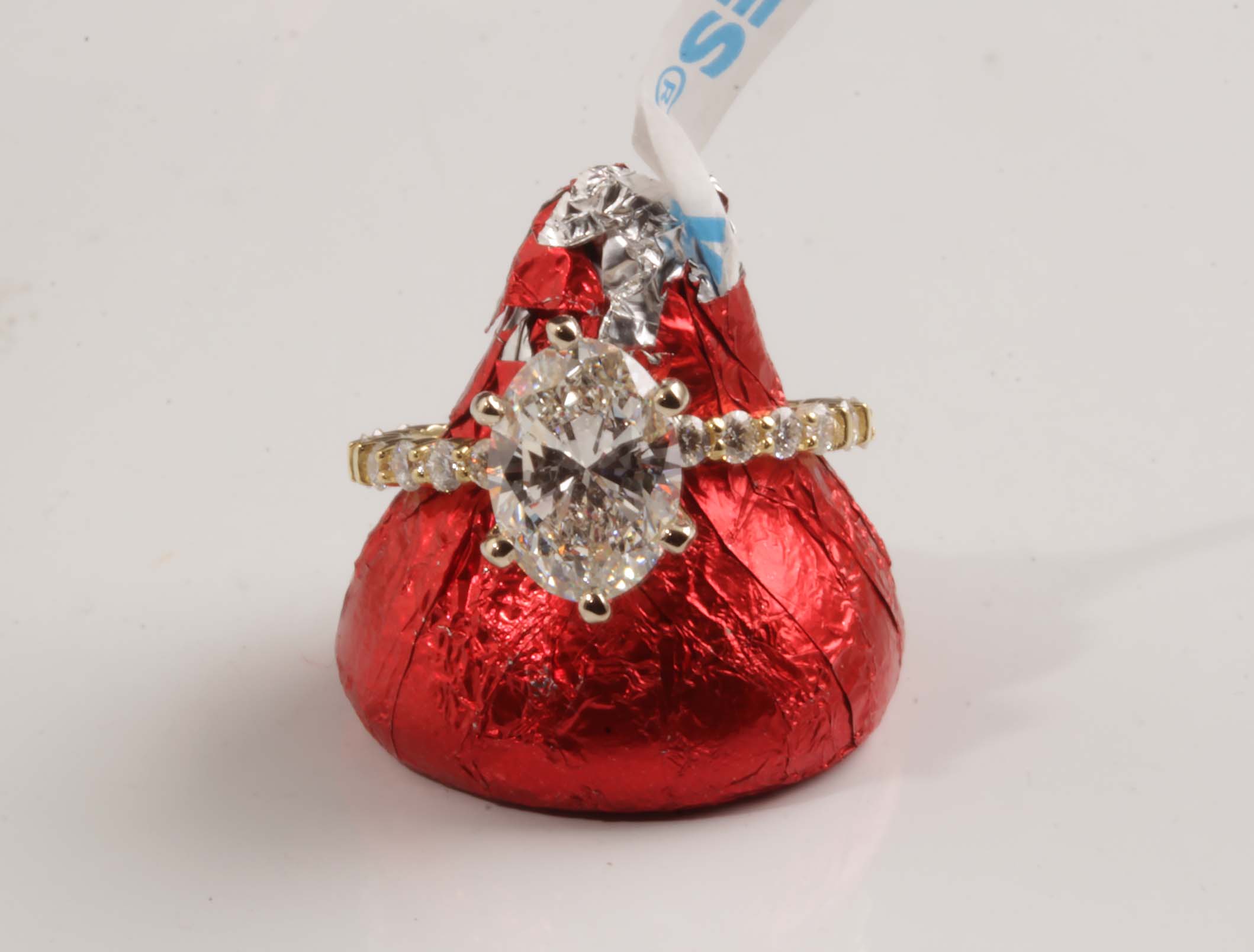 14K YG 2.02ct H SI1 Oval Diamond Ring w/ .48tdw in Semi Mount #12138