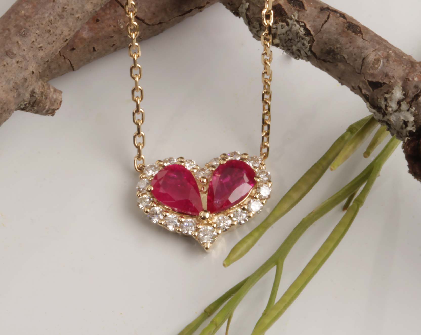 14K YG 2 Ruby & Diamond .30tdw pendant
