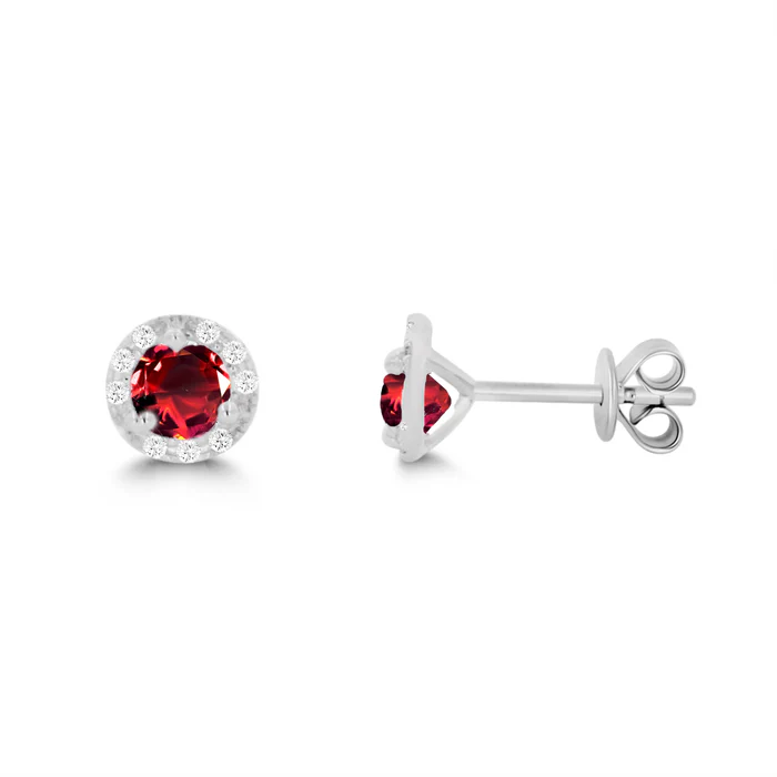Be the first to review “14KT White Gold .80ctw Garnet & .08 Diamond Halo Earrings”