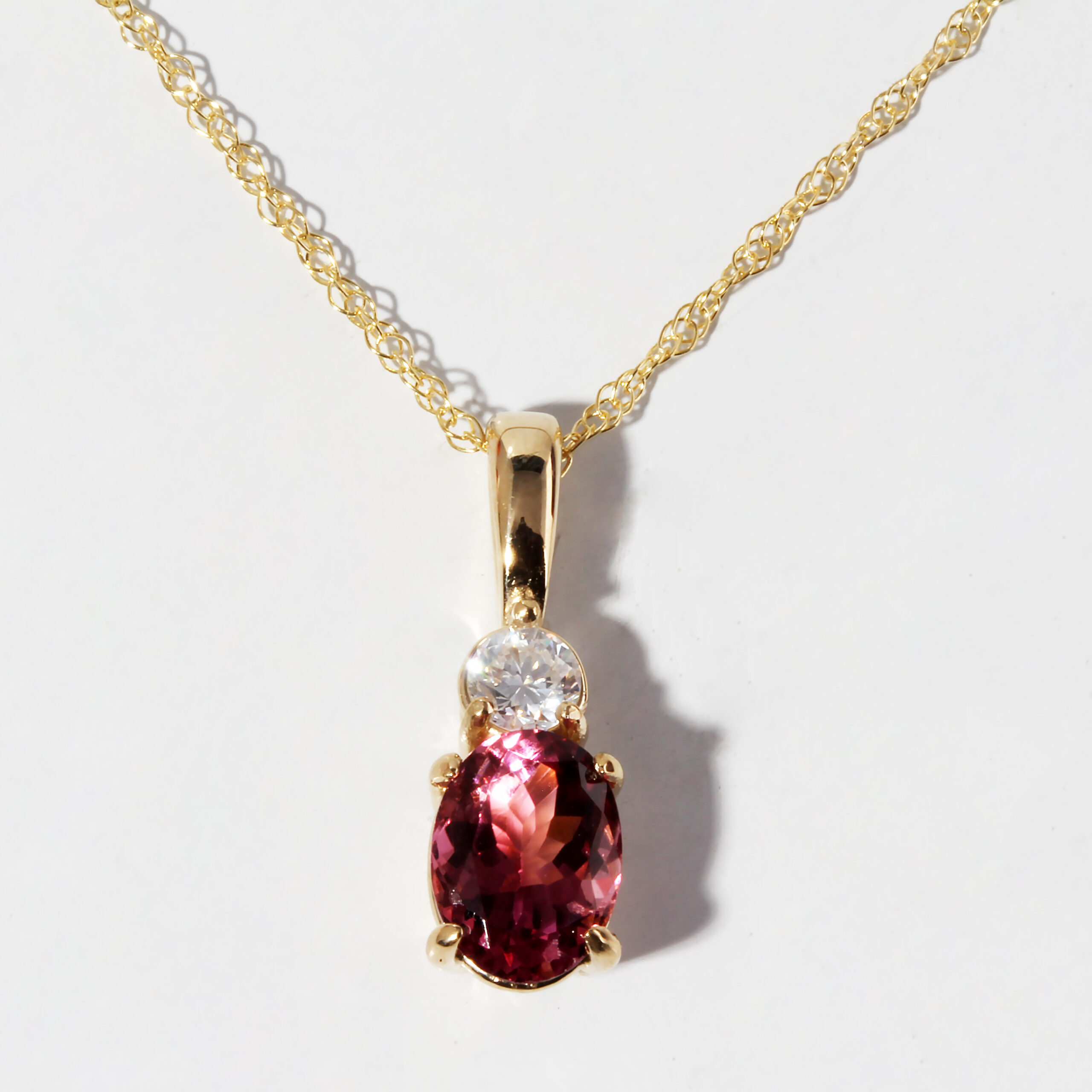 14KT Yellow Gold 1.3ct Pink Tourmaline and .20ct Diamond Pendant #230-00093