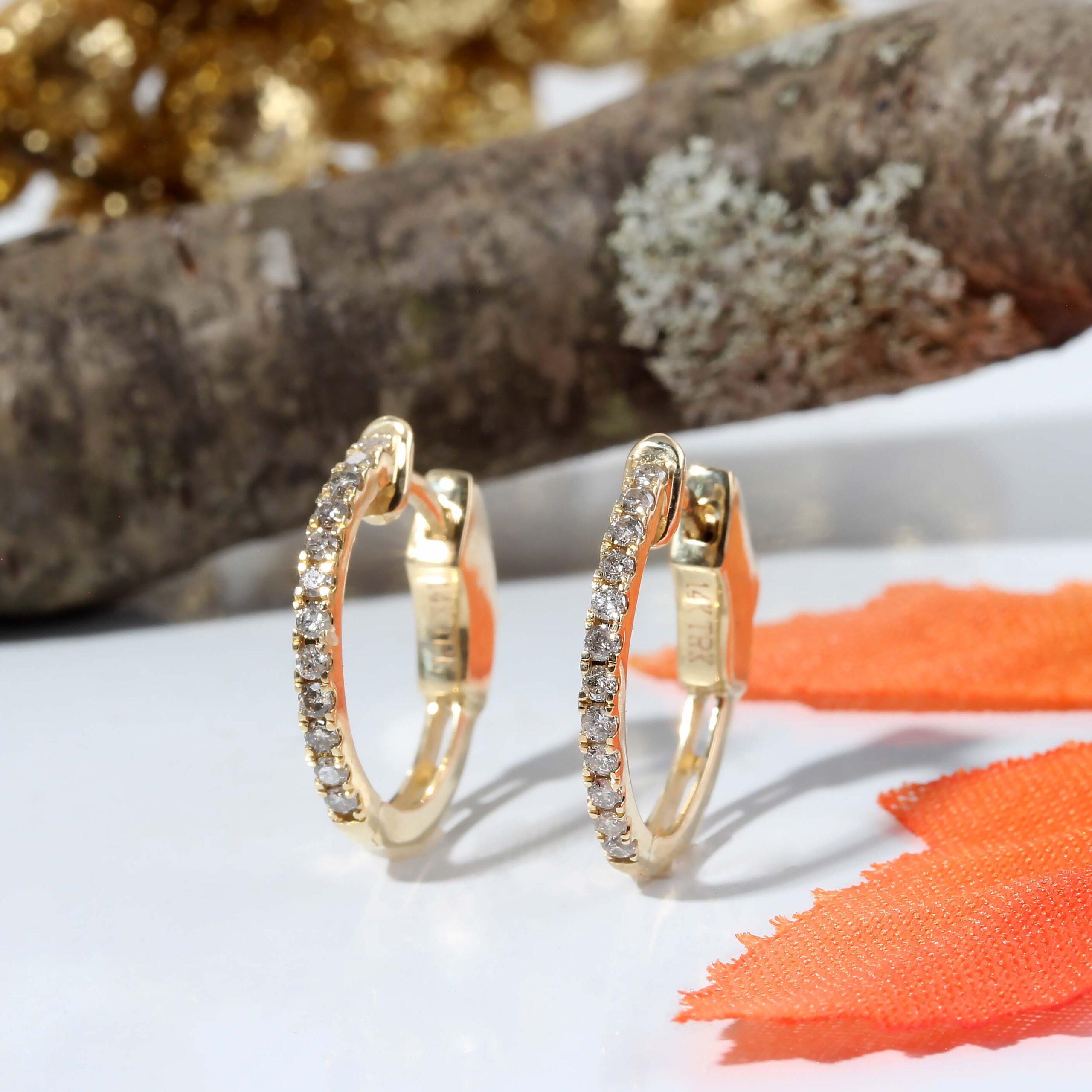 14KY 1/4tdw Round Diamond Hoop Earrings w/ Safety Release #150-00159