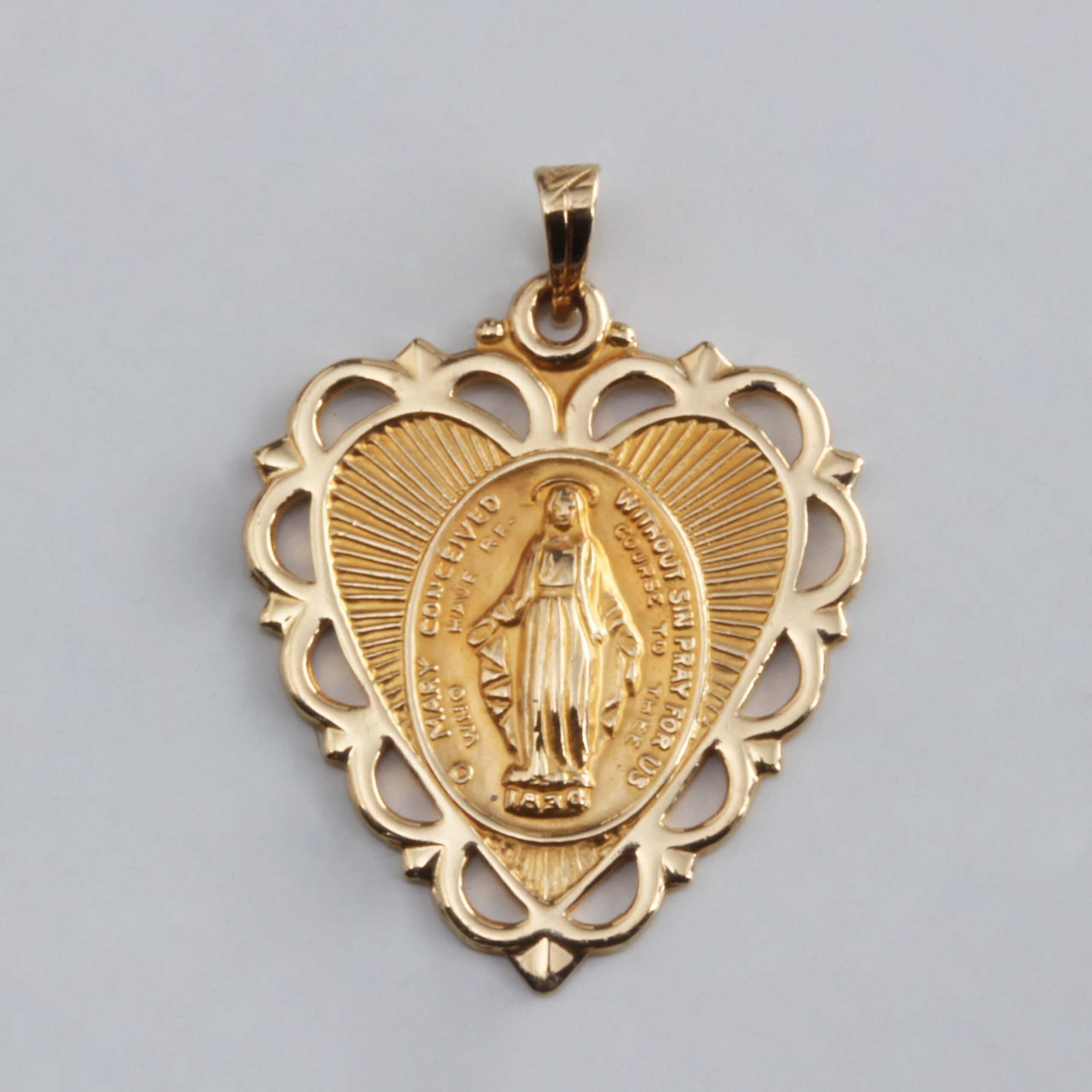 14KT Yellow Gold Heart-Shaped Miraculous Medal #435-00115