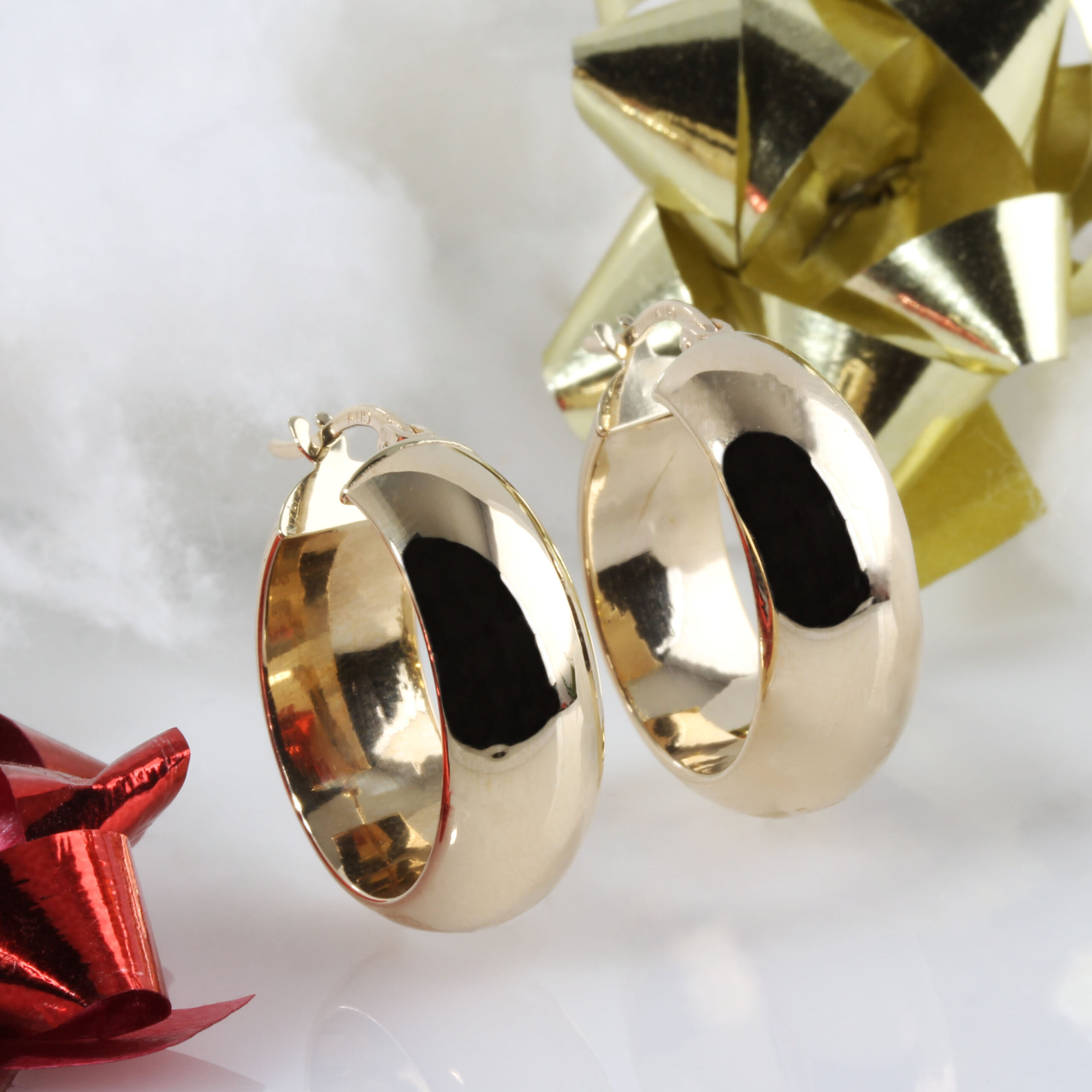 14KT Yellow Gold Hollow Hoop Earrings #425-00068