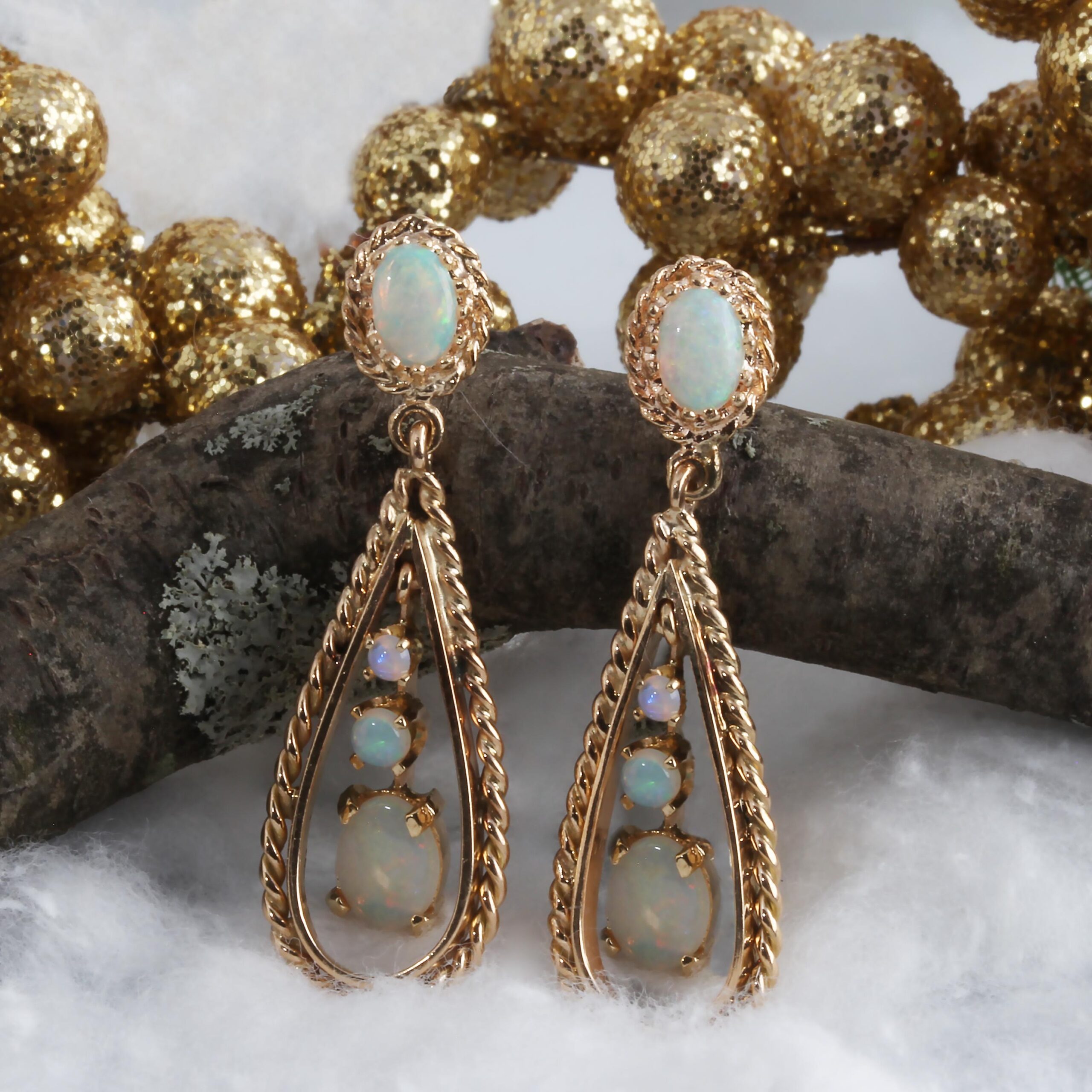 14KT Yellow Gold Opal Dangle Earrings #098-00103