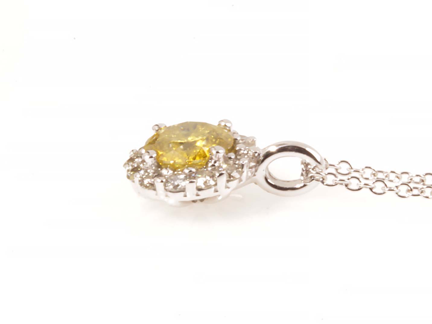 14KW .96ct Round Yellow Diamond w/ .25ct Halo Diamond Pendant #160-00108