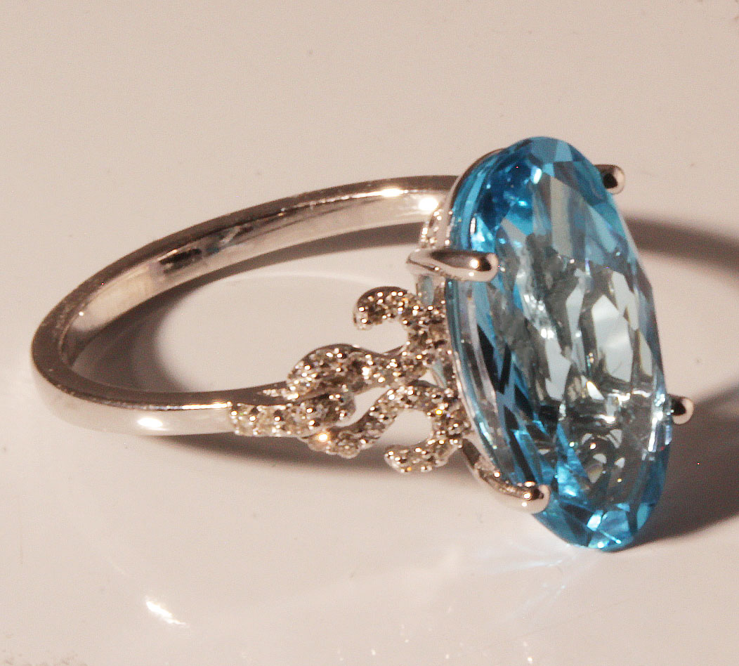 14KW Oval Blue Topaz .017Dwt Ring #200-00038