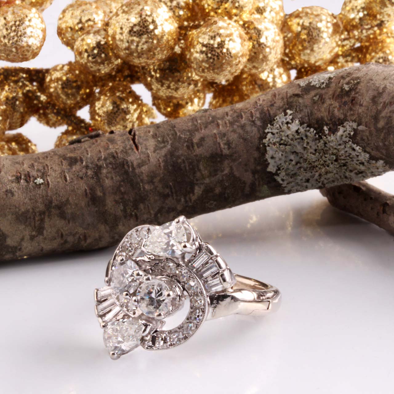 14KWG 2.00CT Dia Cluster Ring with Finger Fit Shank