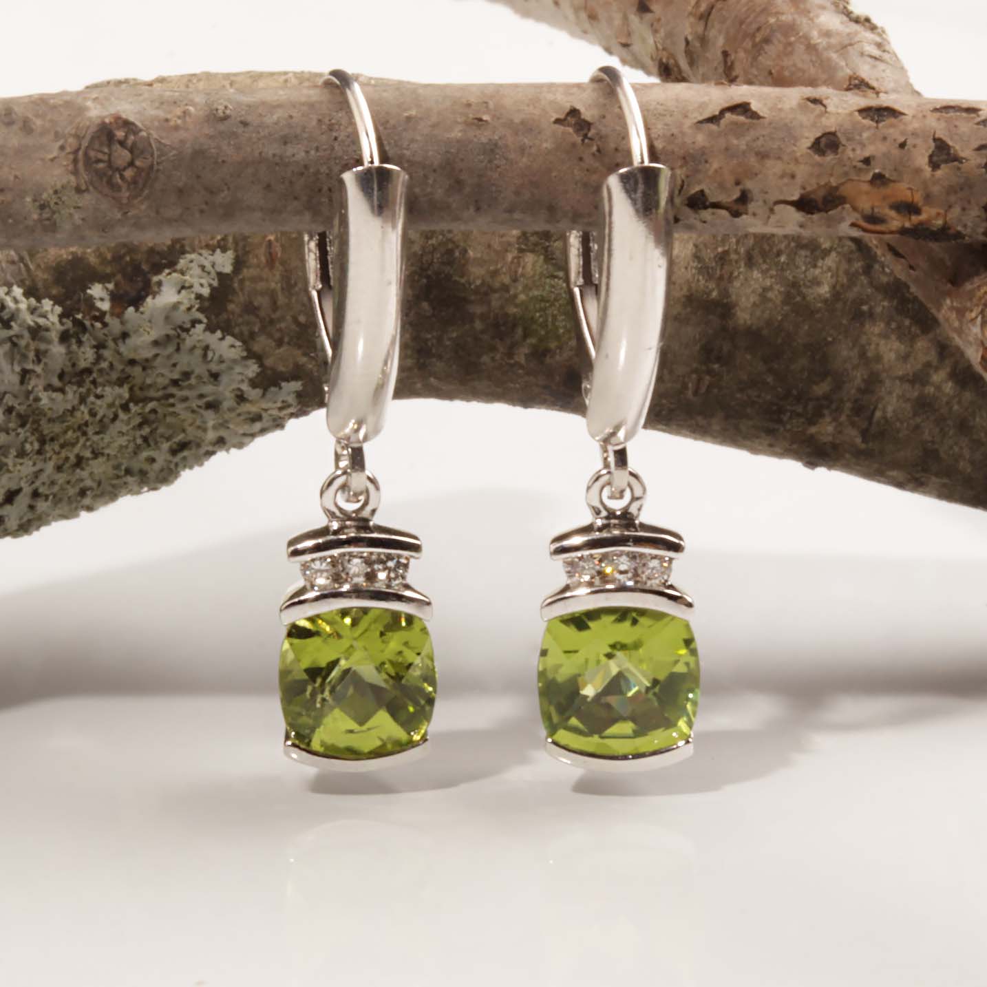 14KY Green Peridot w/ Dia Lever Back   #210-00067