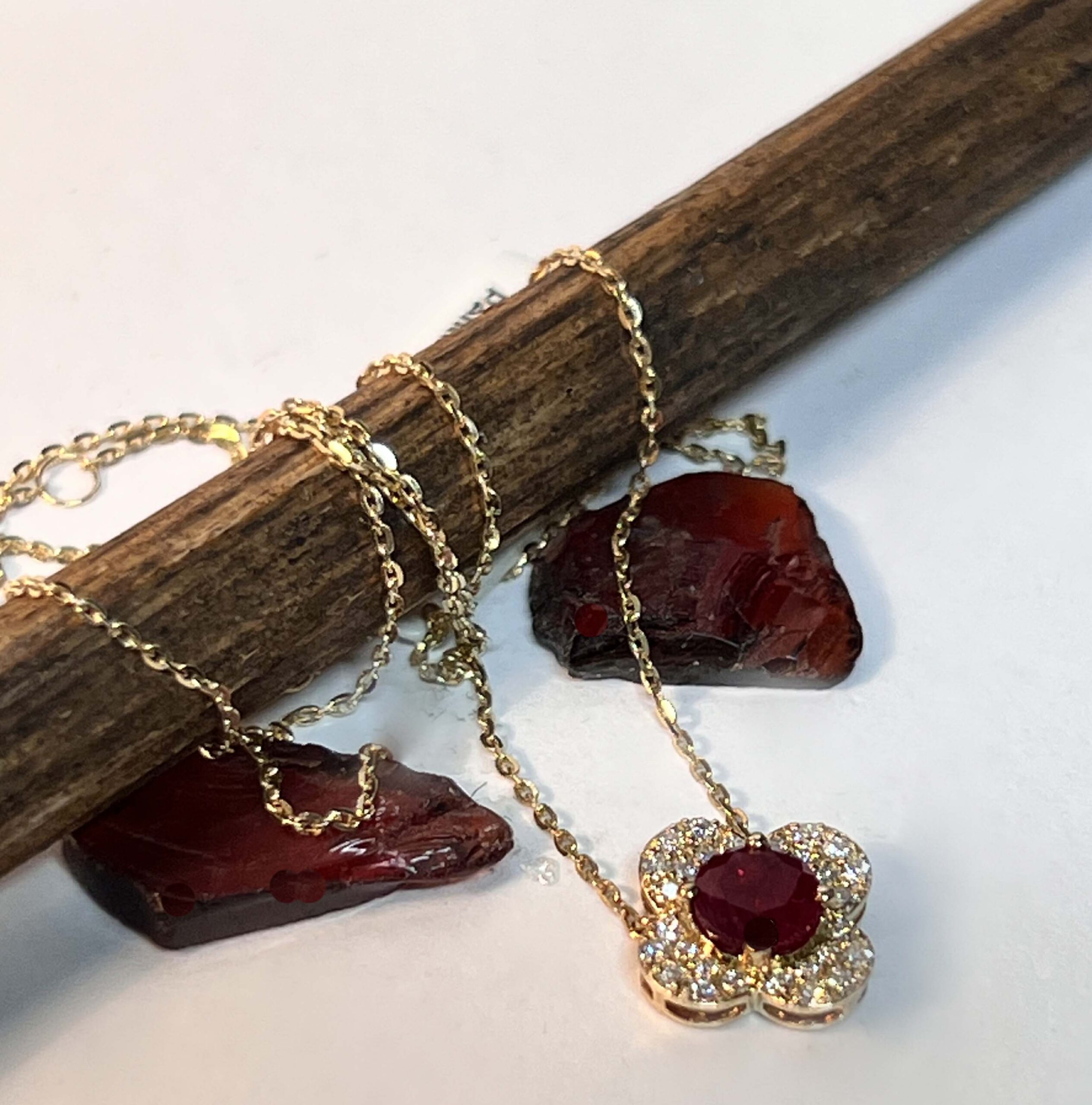 14KY .20Tdw Dia &.70ct Ruby Flower Pendent