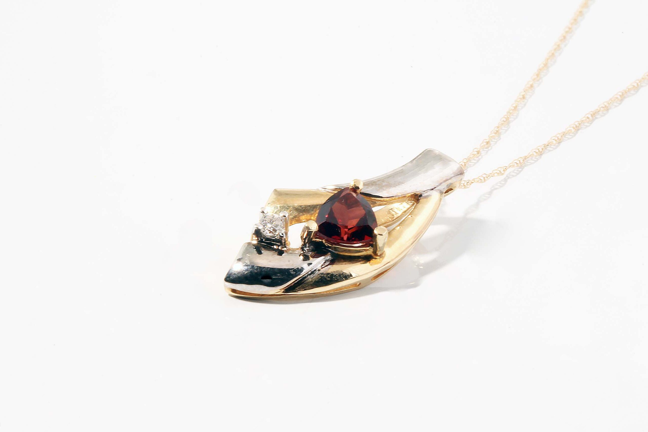 14KYG Trillion Cut Garnet & Diamond Pendant #230-00021