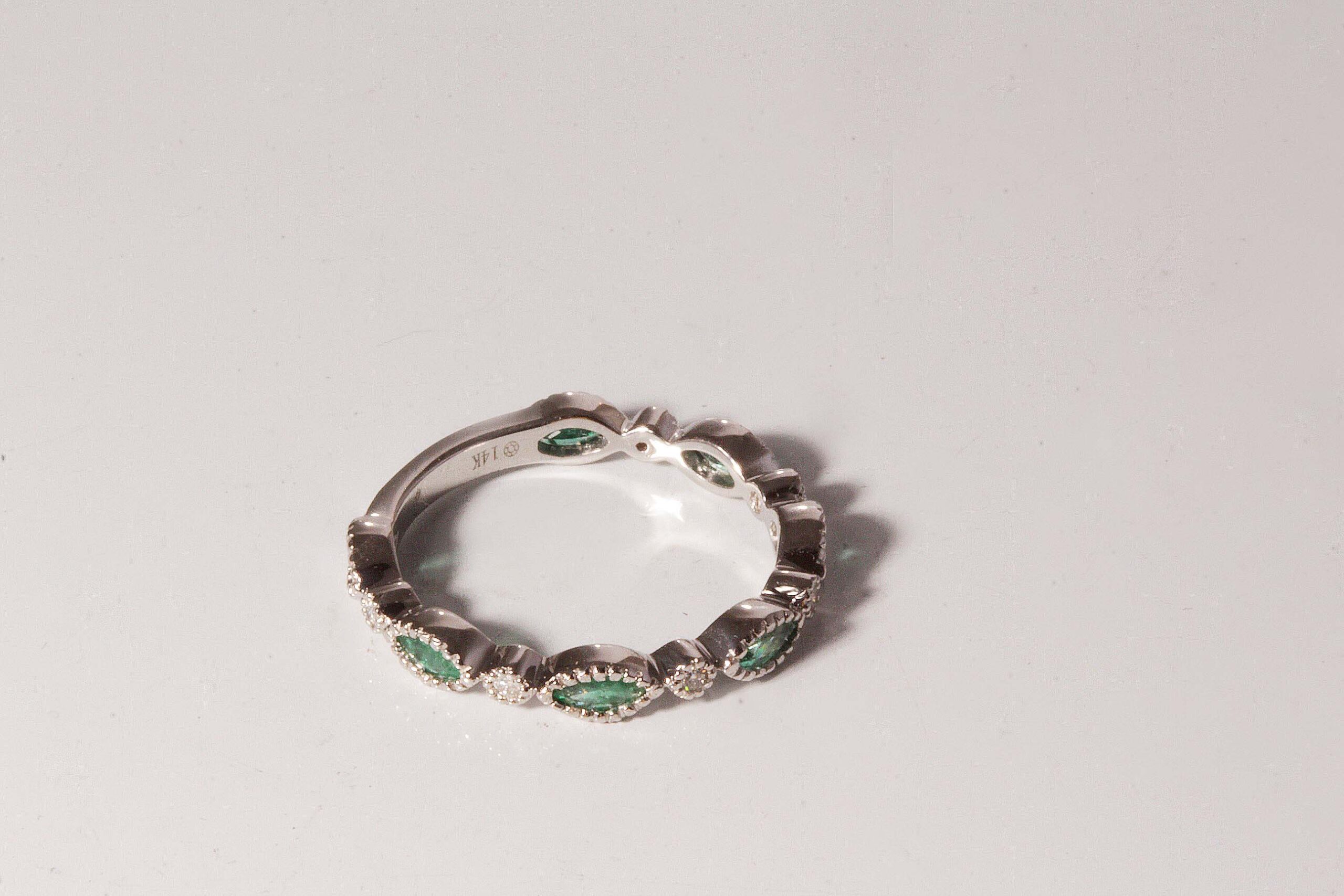 14WG Dia/Emerald Wedding Band E: 0.54 CT: 0.06