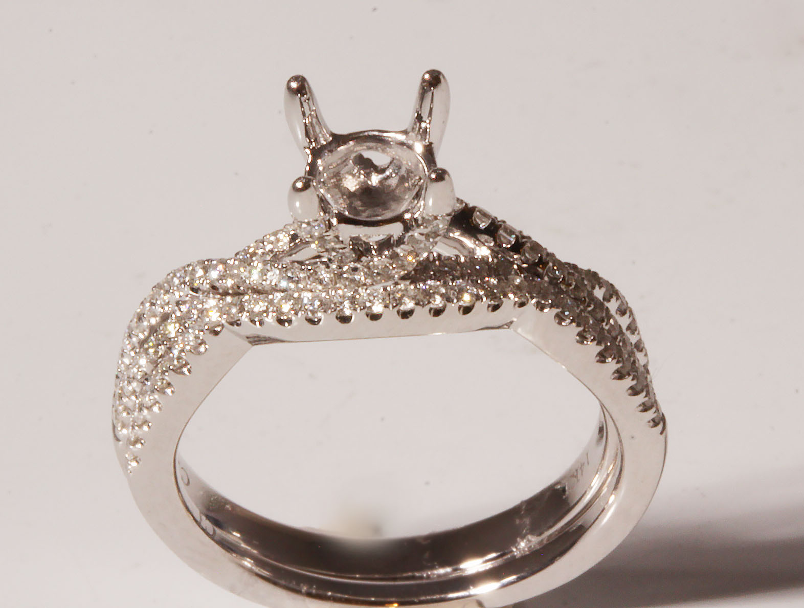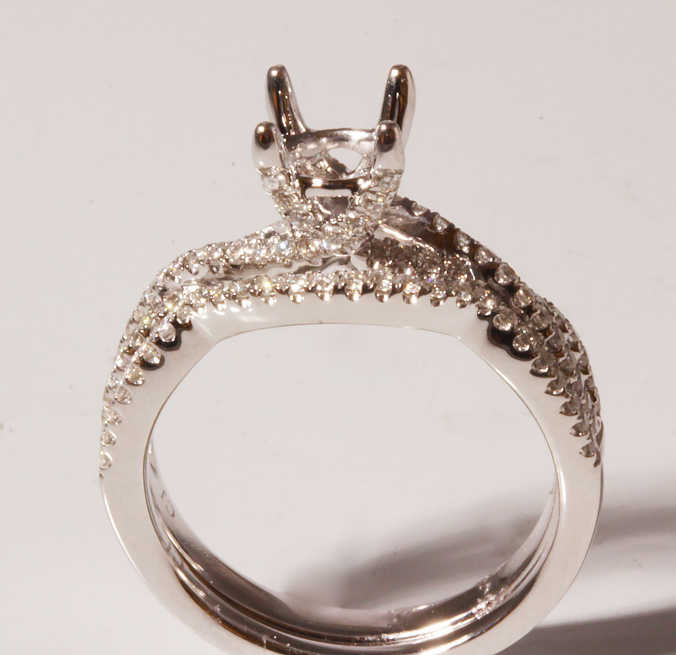 14WG Round Diamond Engagement Ring 0.376cts / Wedding Band 0.15cts #11167