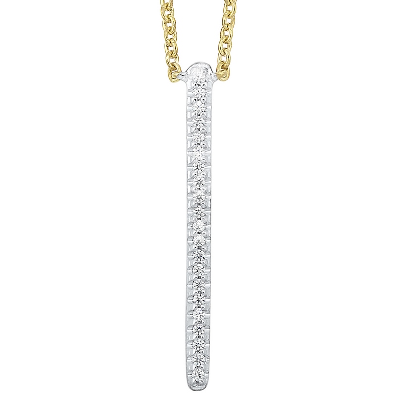 18″ 10K Yellow Gold Cable Link Chain with 0.05ctw 10K White Gold Straight Dangle Bar Center Piece – #10737
