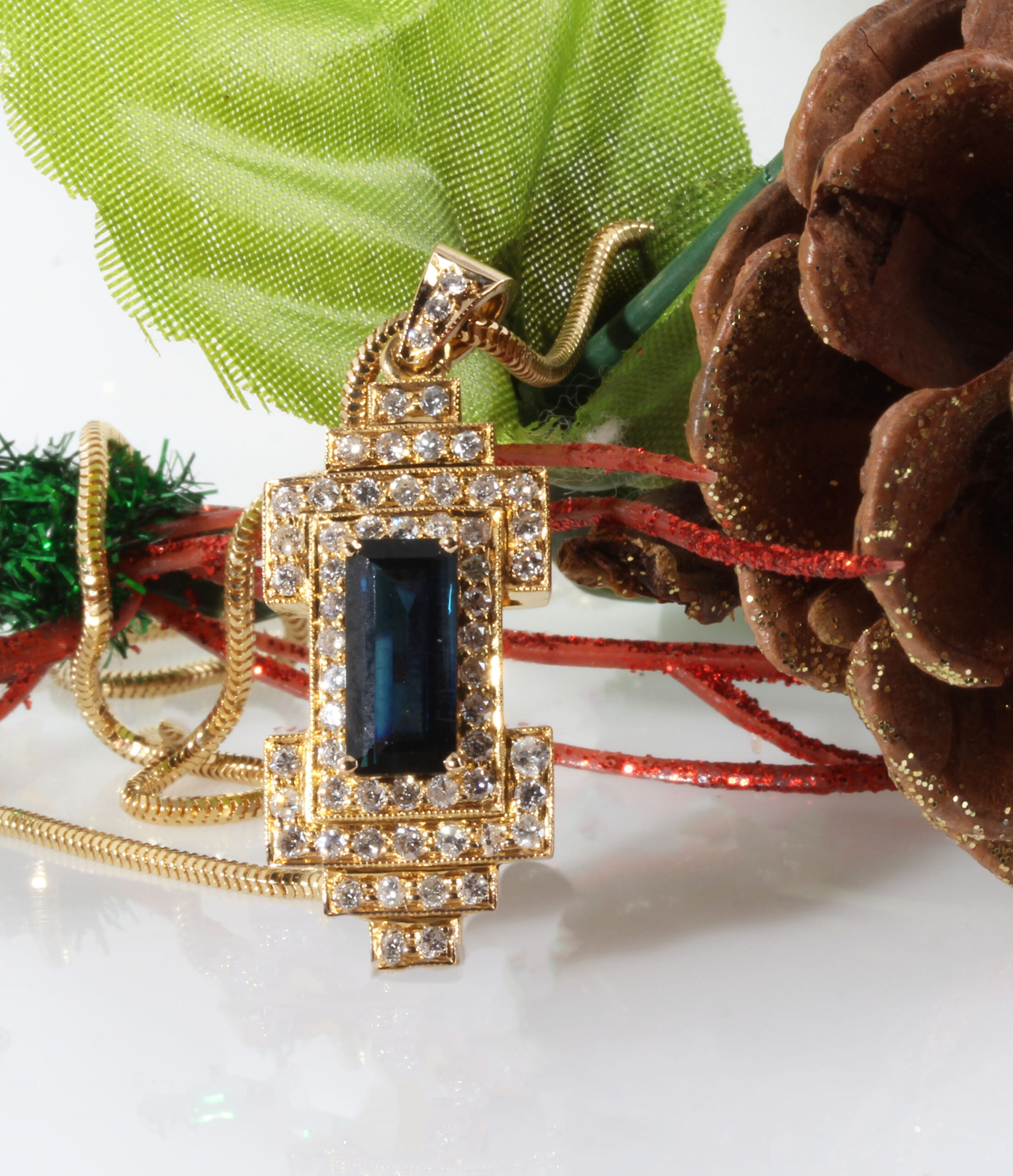 18K Dark Blue Saff Pendent w/ 60 Dia and 18K Chain 22In