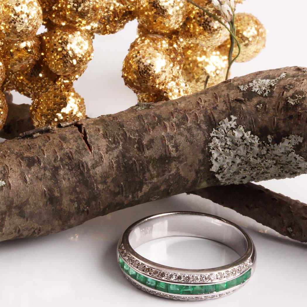 18KW .51ct Emerald & .22tdw Diamond Ring #200-00080