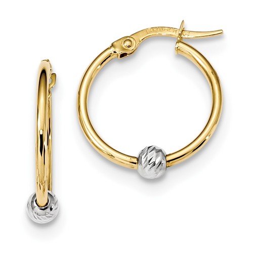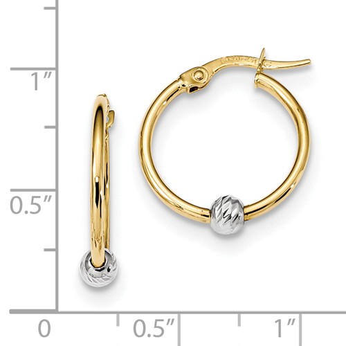 1mm 14K Yellow Gold Round Wire Hoop with White Gold Diamond-Cut Ball Center