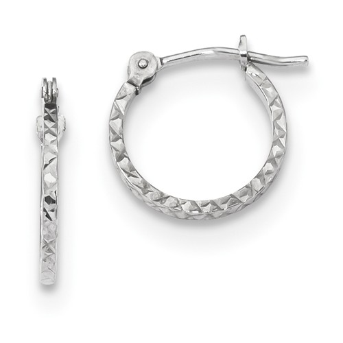 1mm Polished Diamond-Cut Square Tube Hoop Earrings in 14K White Gold -Stock#10730