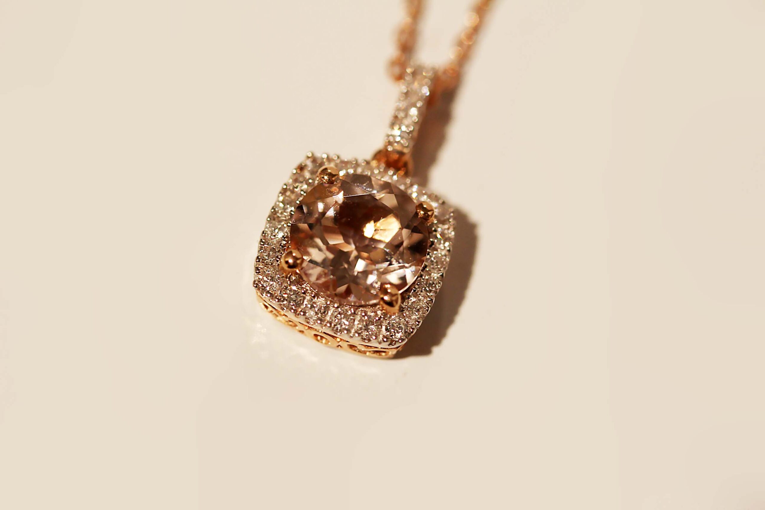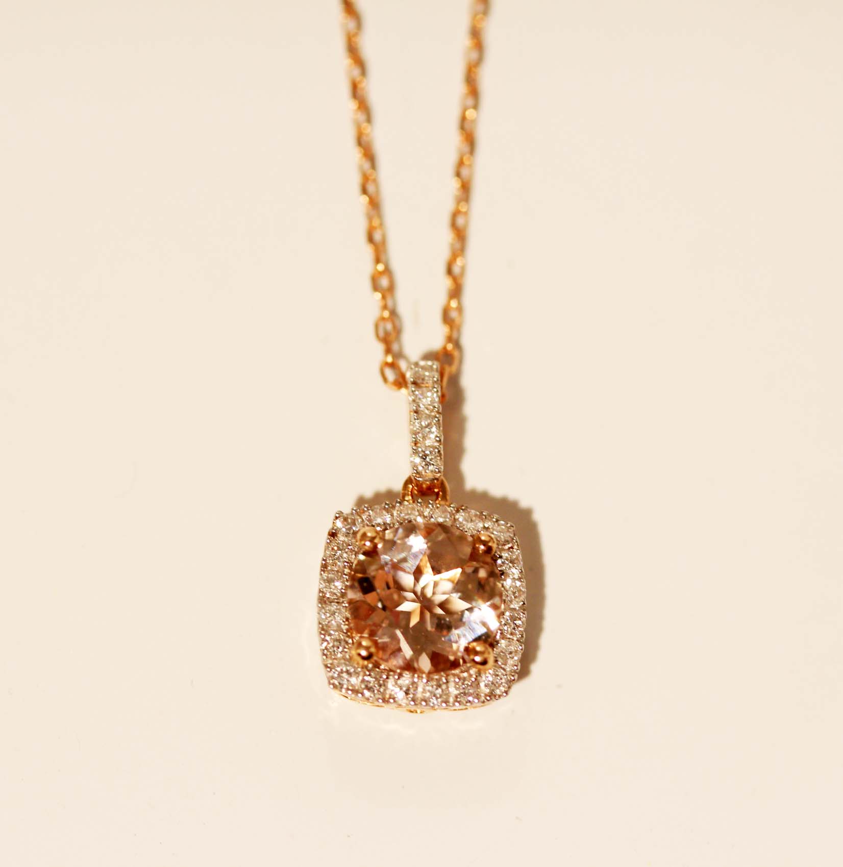 Be the first to review “.20ct Diamond and 1.18ct Morganite Pendant in 14K Rose Gold”