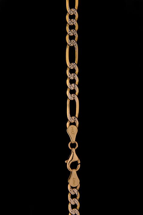 22 Inch 16.8g Pave Figaro Chain 14K Yellow Gold – Stock# 4661