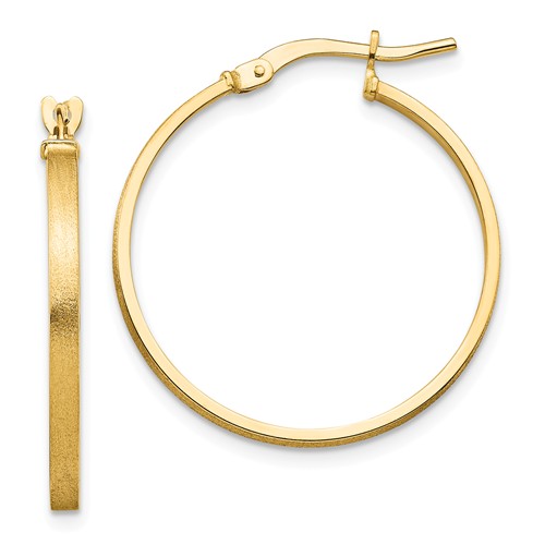 2mm Brushed and Polished Hoop Earrings in 14K Yellow Gold