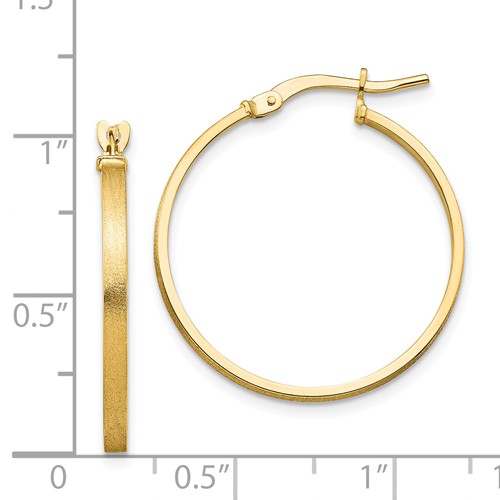2mm Brushed and Polished Hoop Earrings in 14K Yellow Gold -Stock#10732
