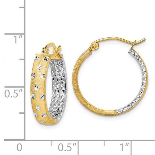 3.5mm Rhodium Satin, Polished and Diamond-cut In/Out Hoop Earrings – #10750