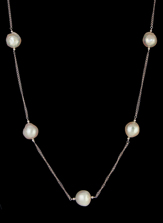 38″ Large Freshwater Pearl Necklace in Sterling Silver Stock# 8839