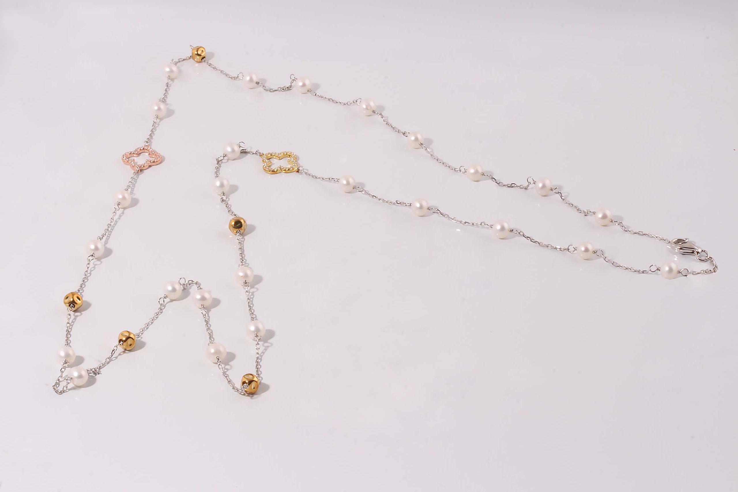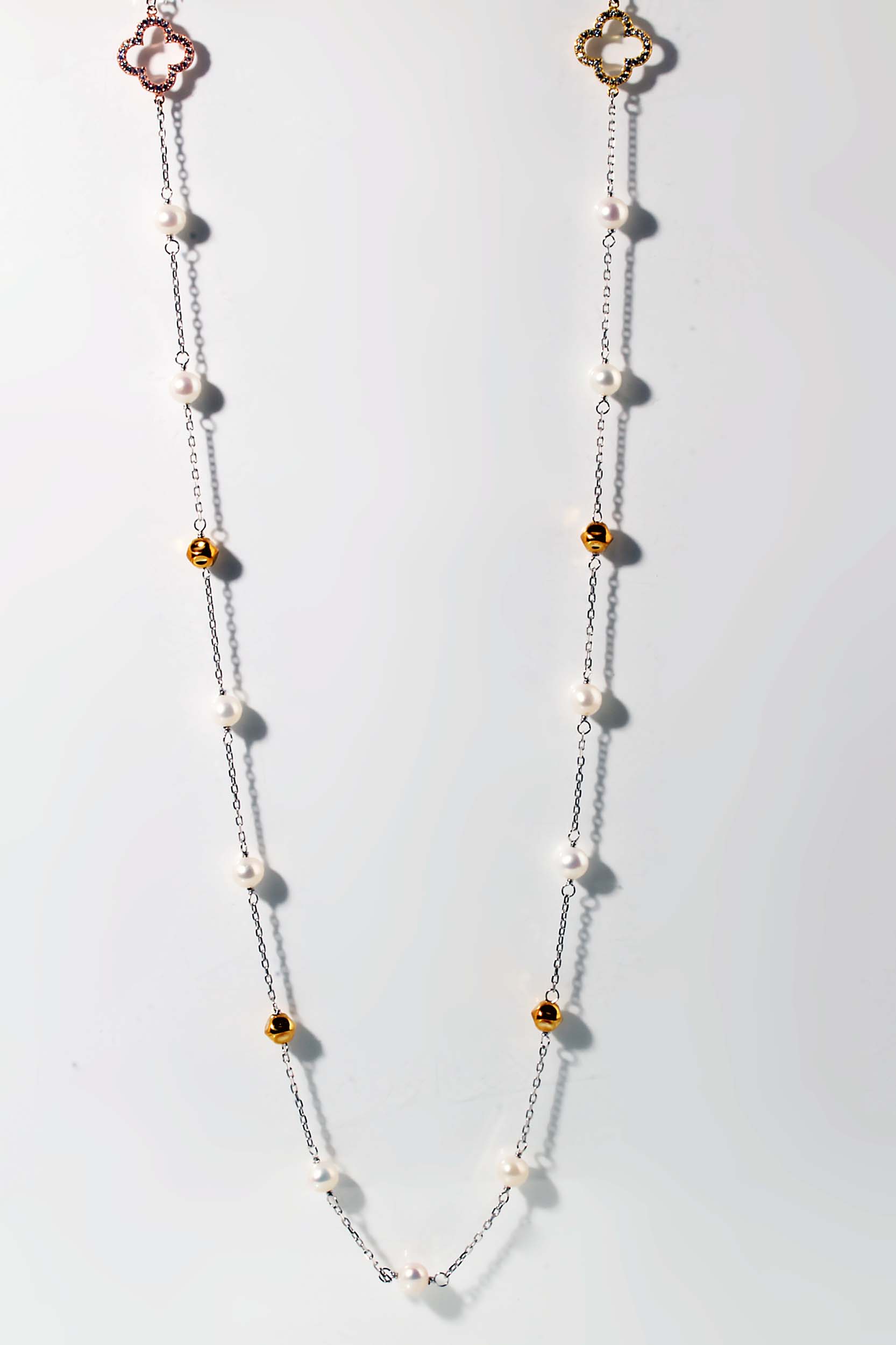38″ Pearl Necklace with Yellow Beads in Sterling Silver