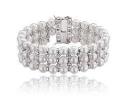Sterling Silver 7″ Triple Row 18mm Wide Pearl (6mm each) & 3mm CZ in Between Each Pearl w/ CZ Clasp Bracelet – #10522